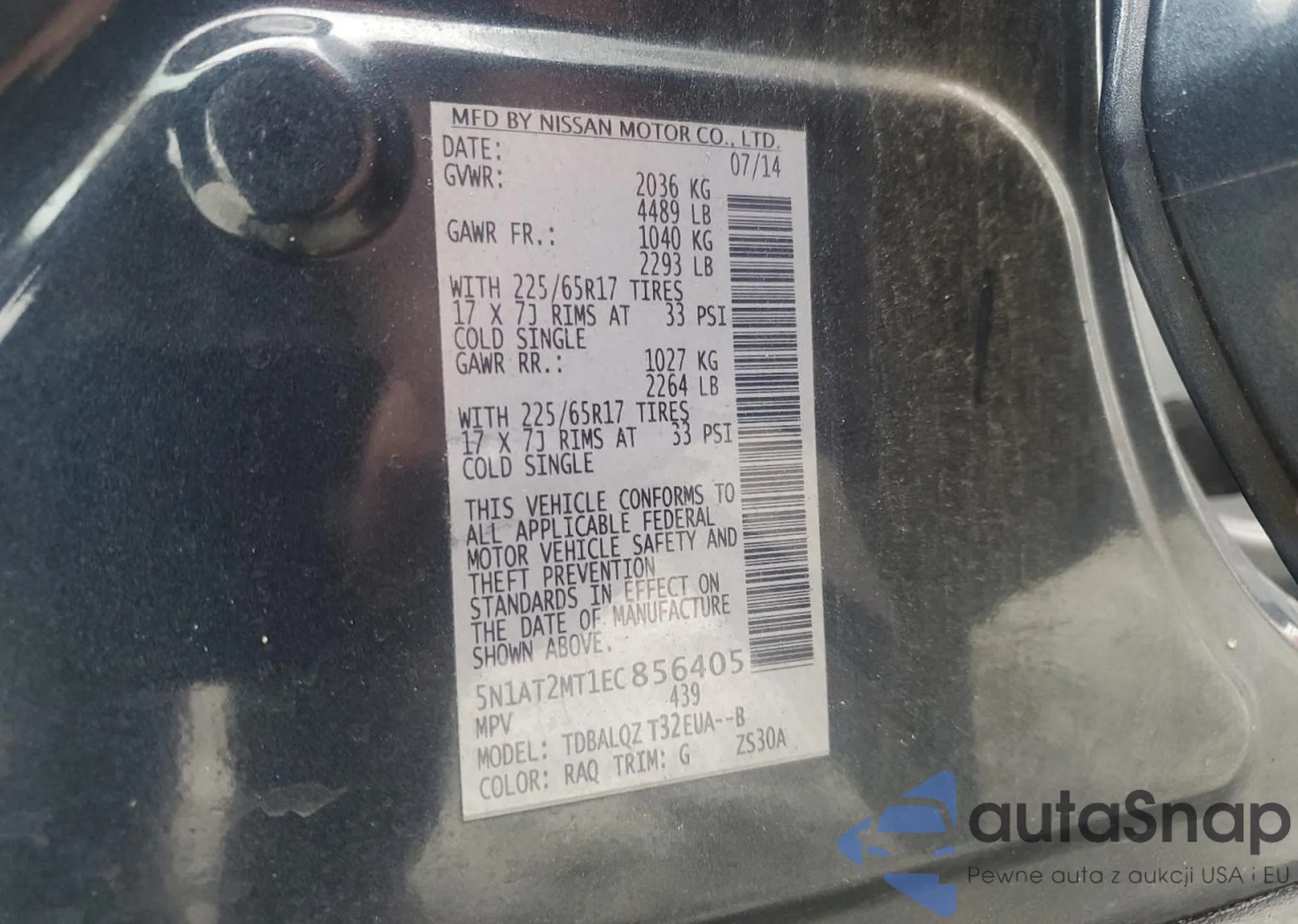 • VIN 5N1AR18WX5C736146