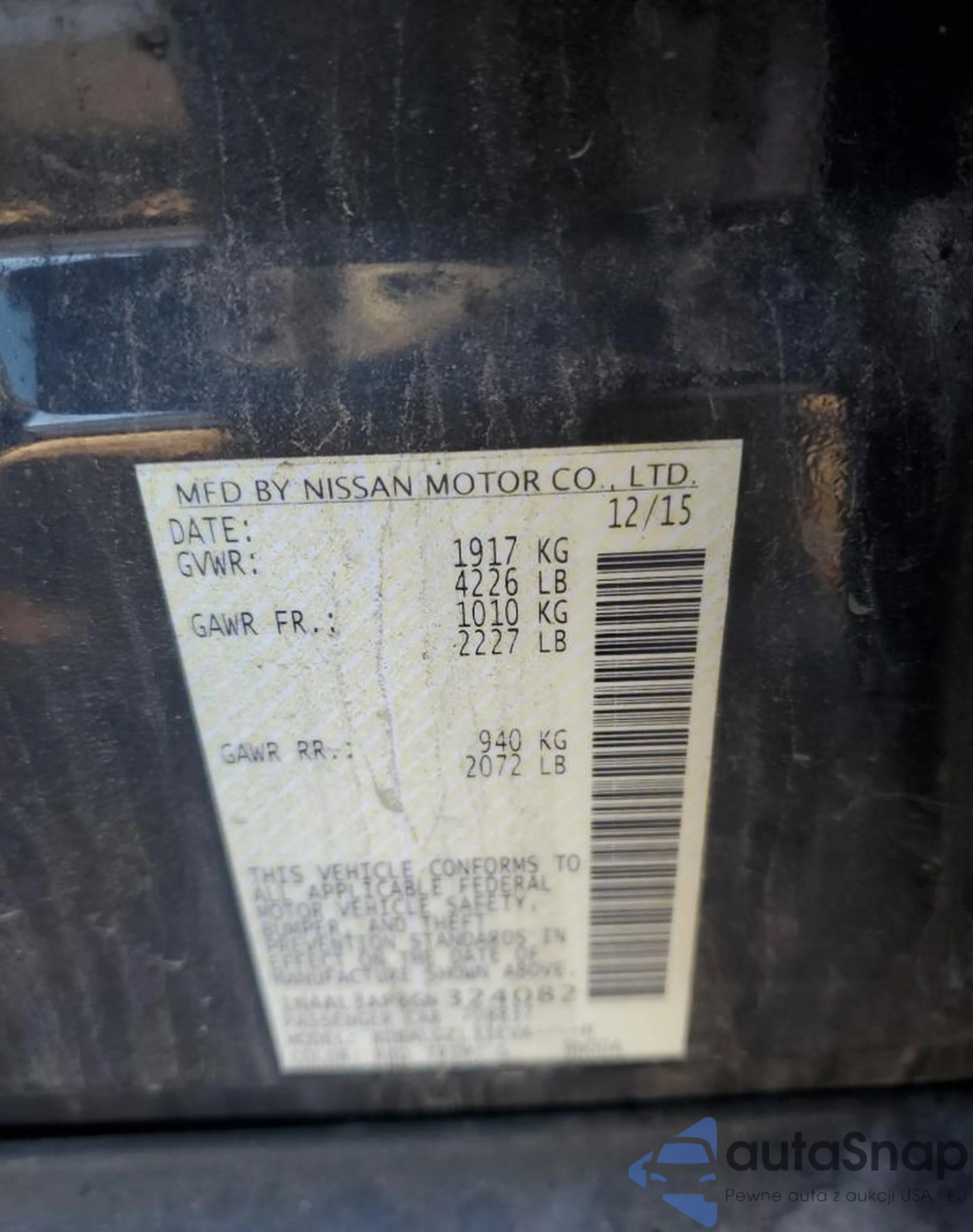 LOT: 91206355 VIN: 5N1AT2MV1JC815011