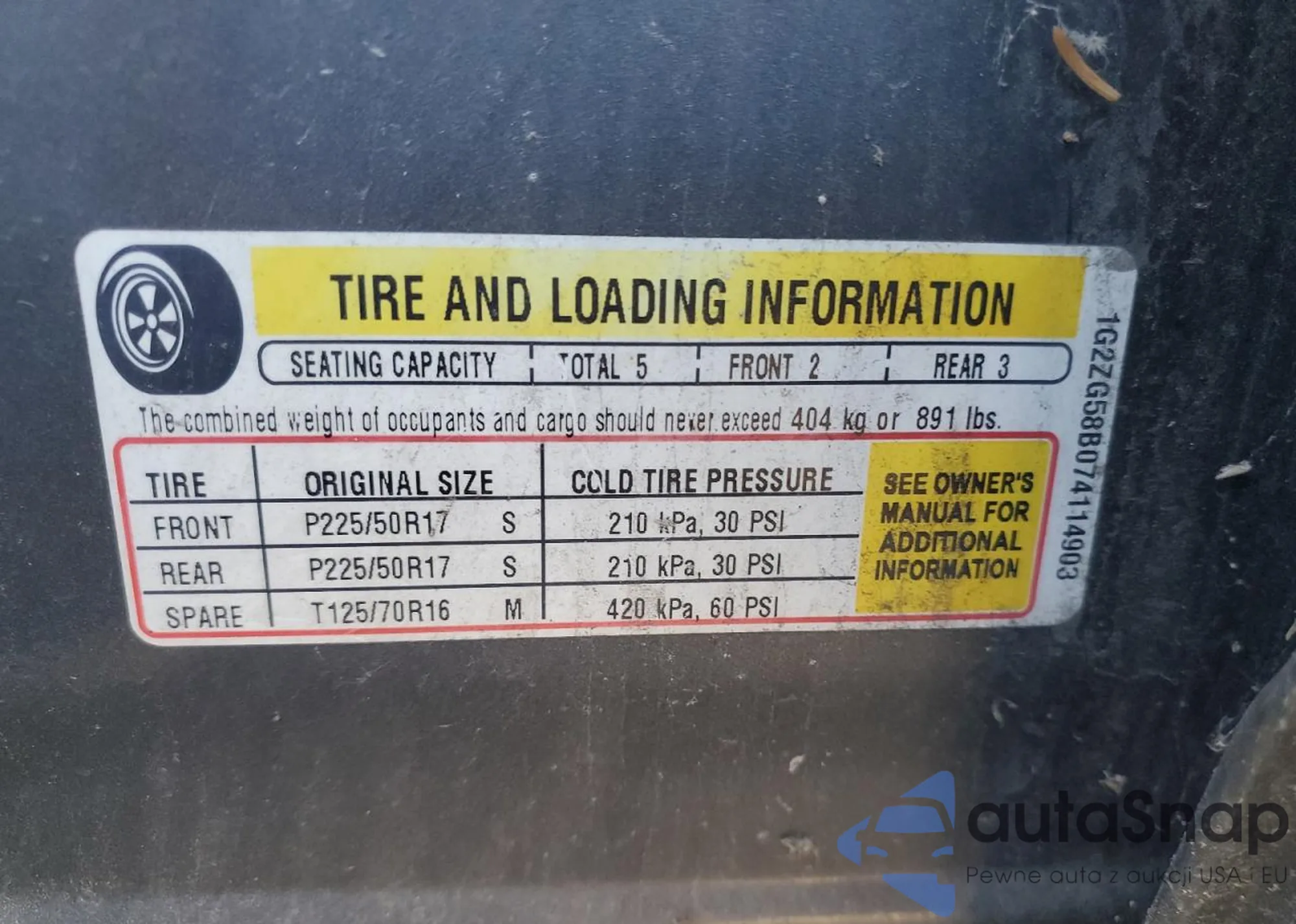• VIN 1G2ZG58B074114903