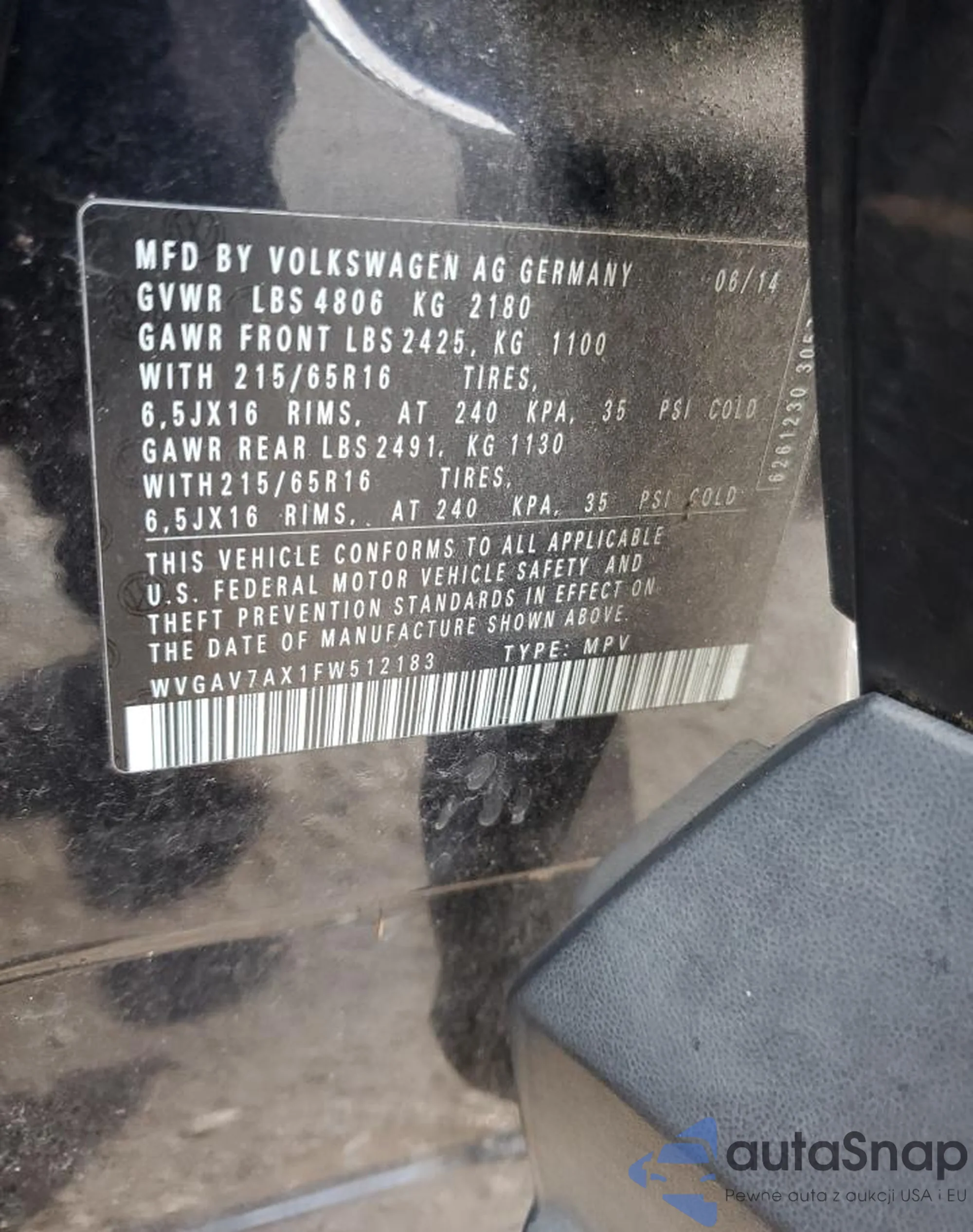 • VIN WVGAV7AX1FW512183