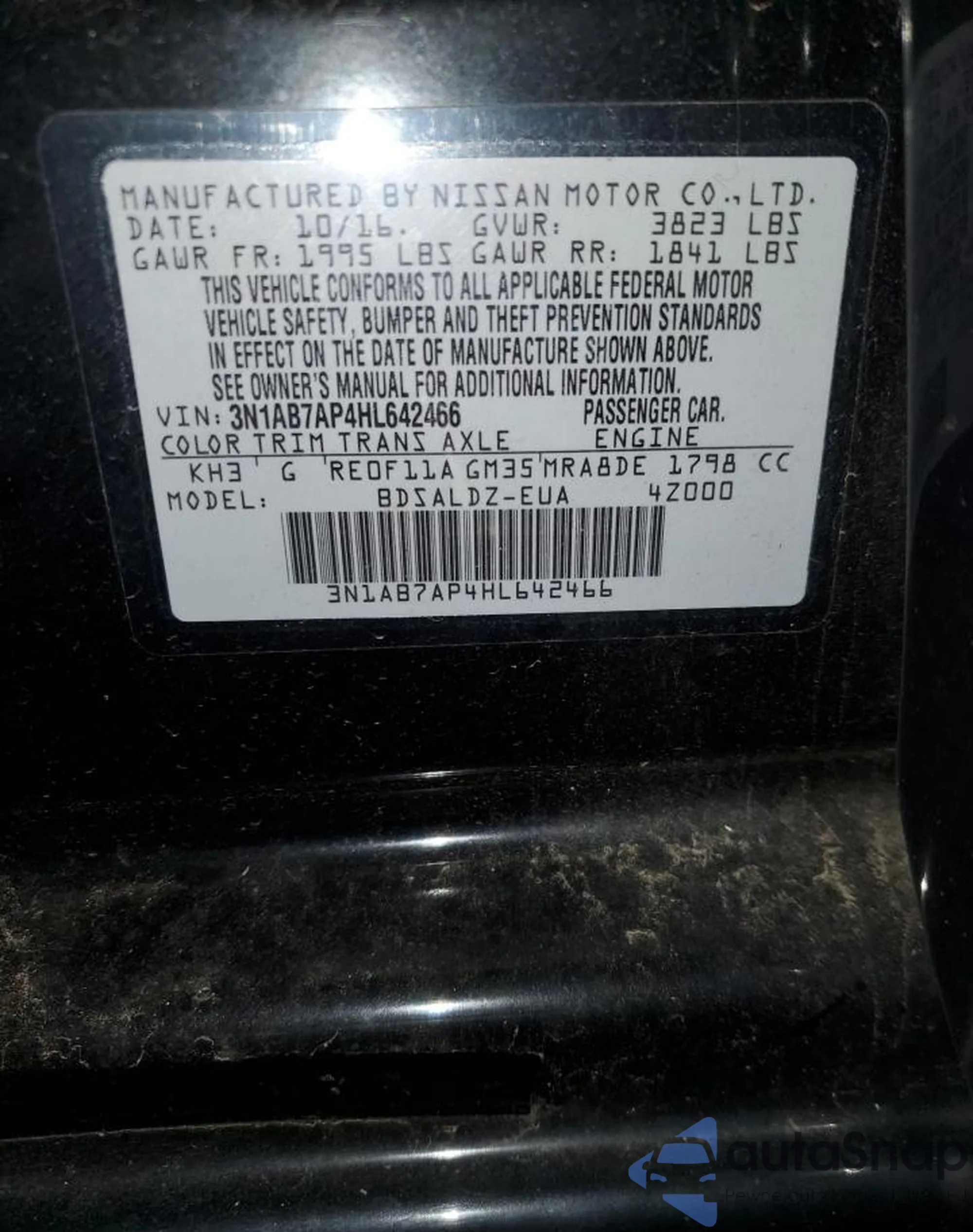 • VIN 3N1AB7AP4HL642466