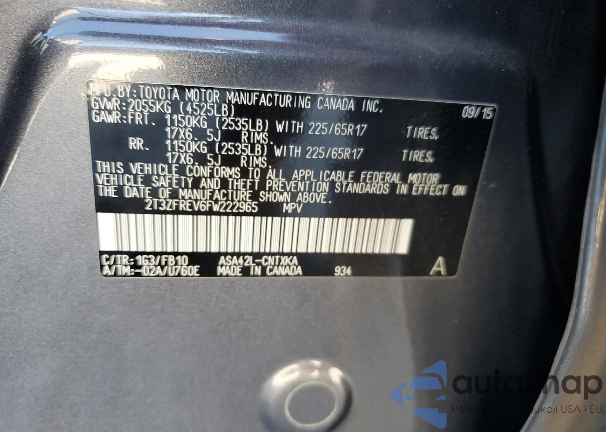 • VIN 2T3ZFREV6FW222965