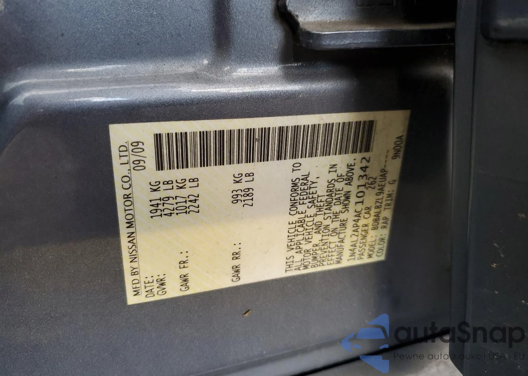 • VIN 1N4BL4CV5NN413806