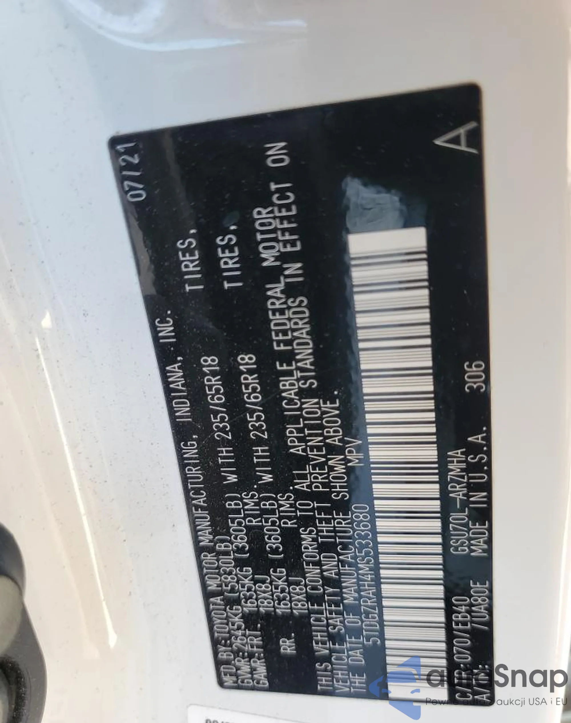 LOT: 91648665 VIN: 5TDGZRAH4MS533680