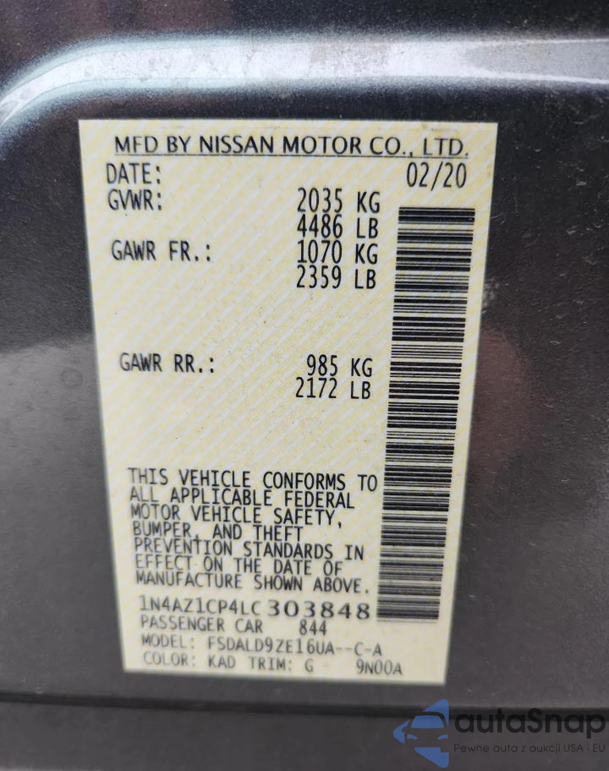 LOT: 85398085 VIN: 1N4AA5AP3BC807307