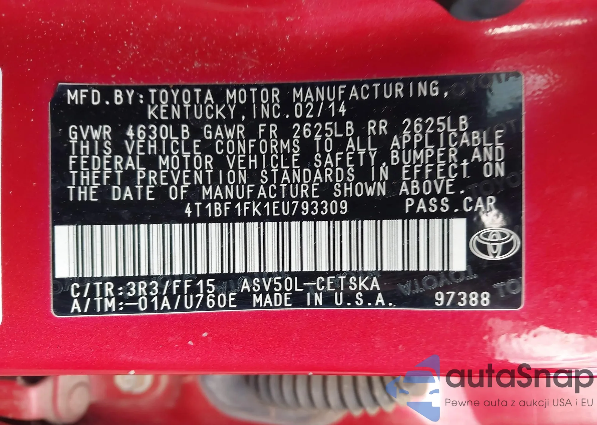• VIN 4T1BF1FK8EU446074
