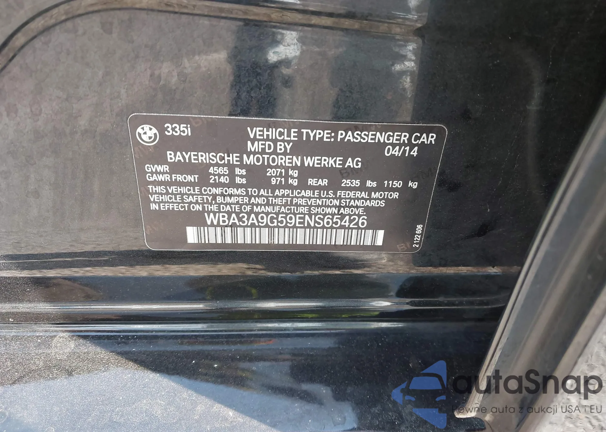 • VIN WBA3A9G59ENS65426