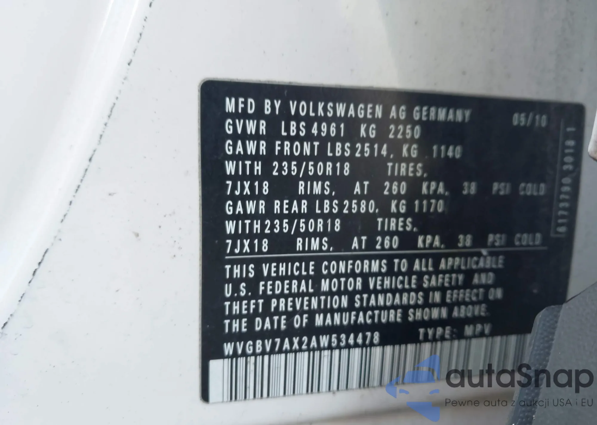 • VIN WVGBV7AX2AW534478