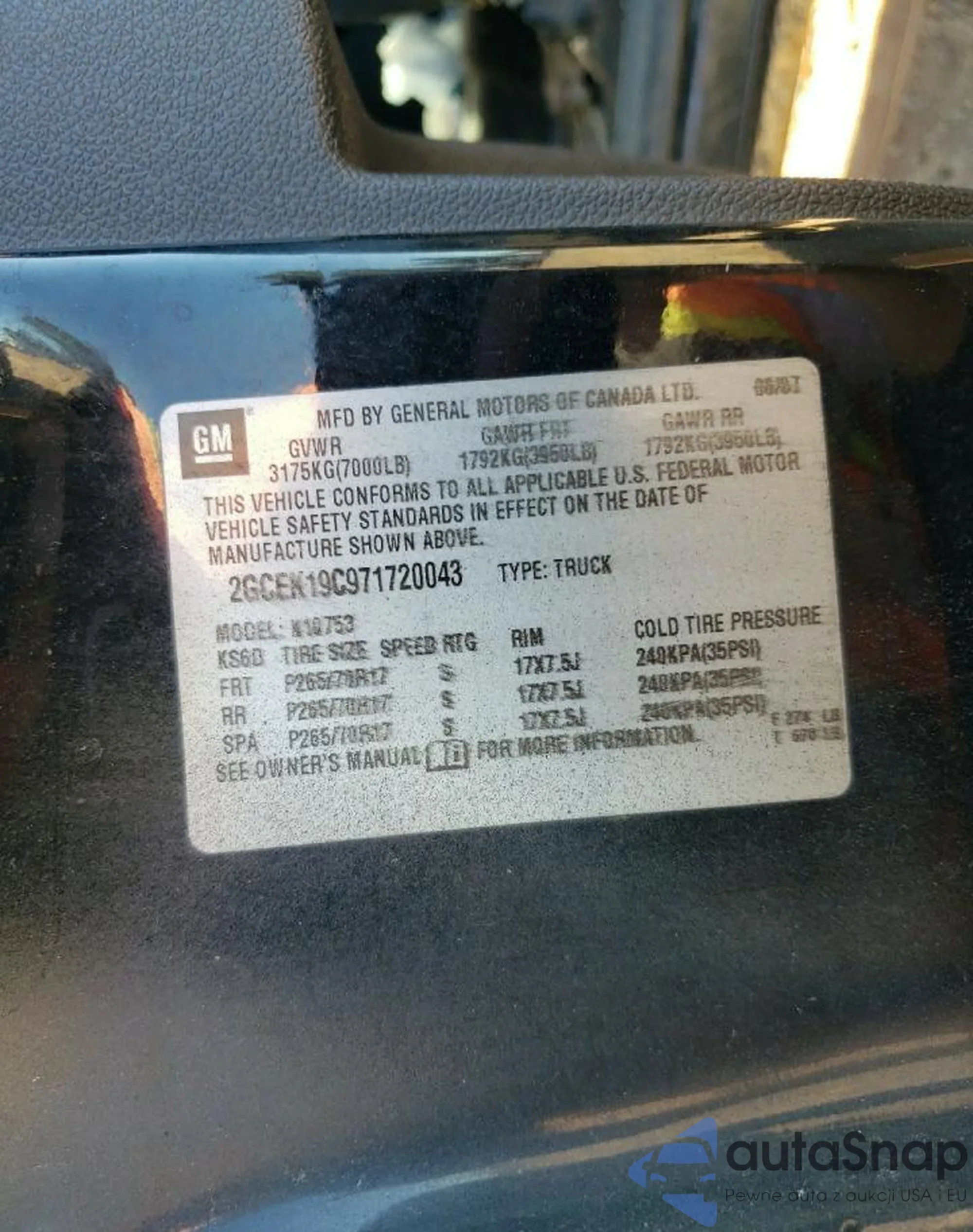 • VIN 2GCEK19C971720043