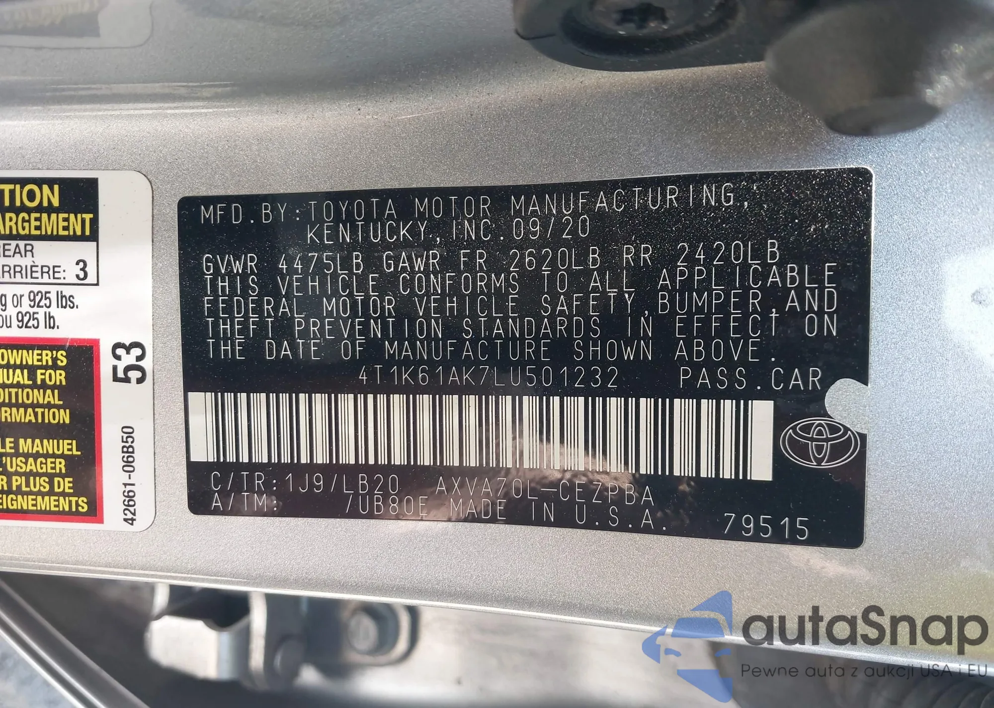 • VIN 4T1K61AK7LU501232
