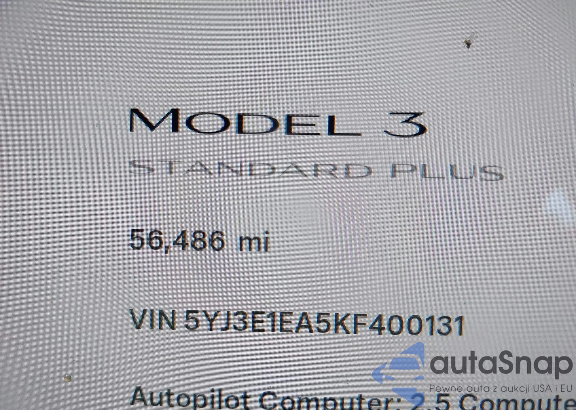 LOT: 42572676 VIN: 5YJ3E1EA5KF400131