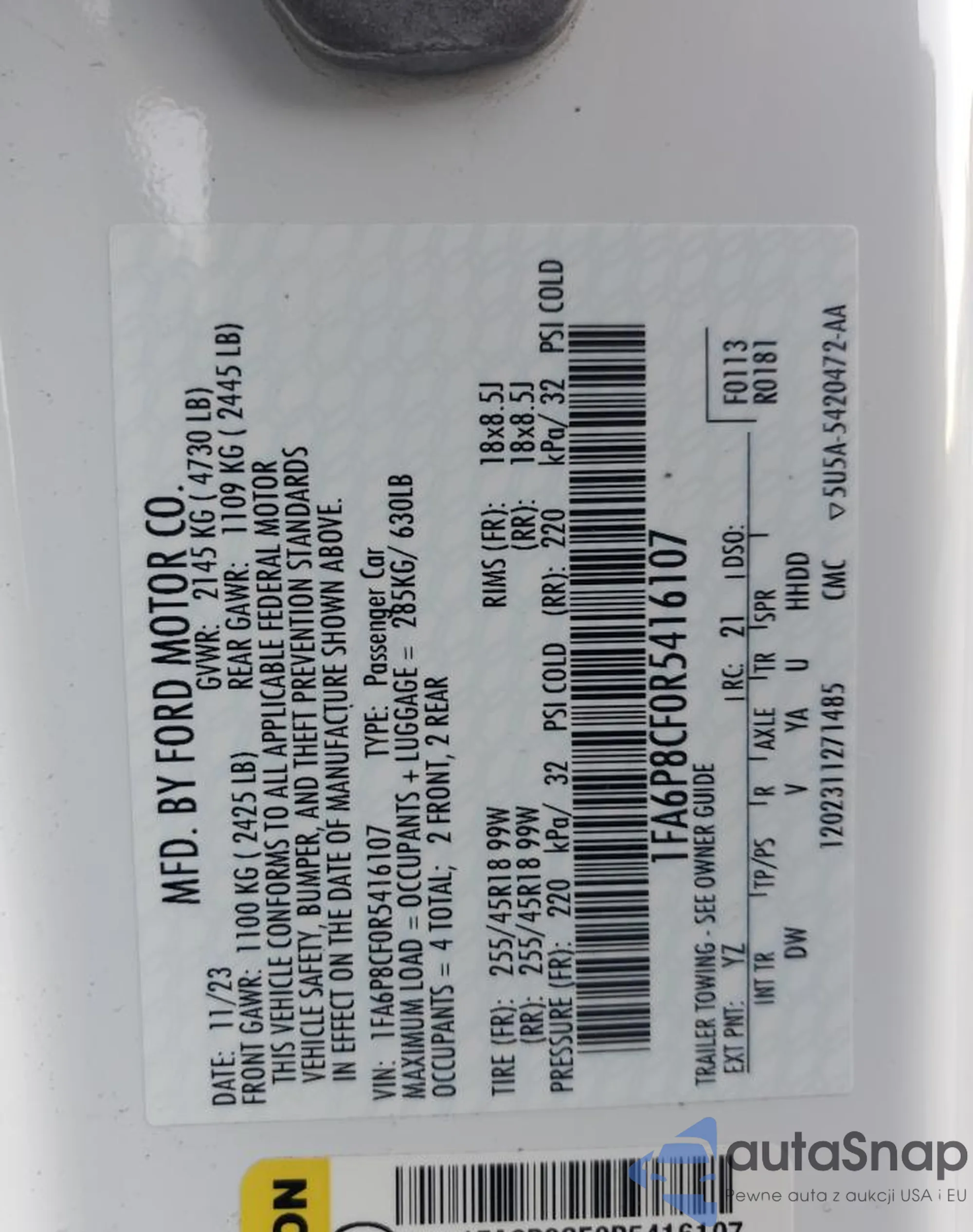 LOT: 89479825 VIN: 1ZVBP8AN0A5151905