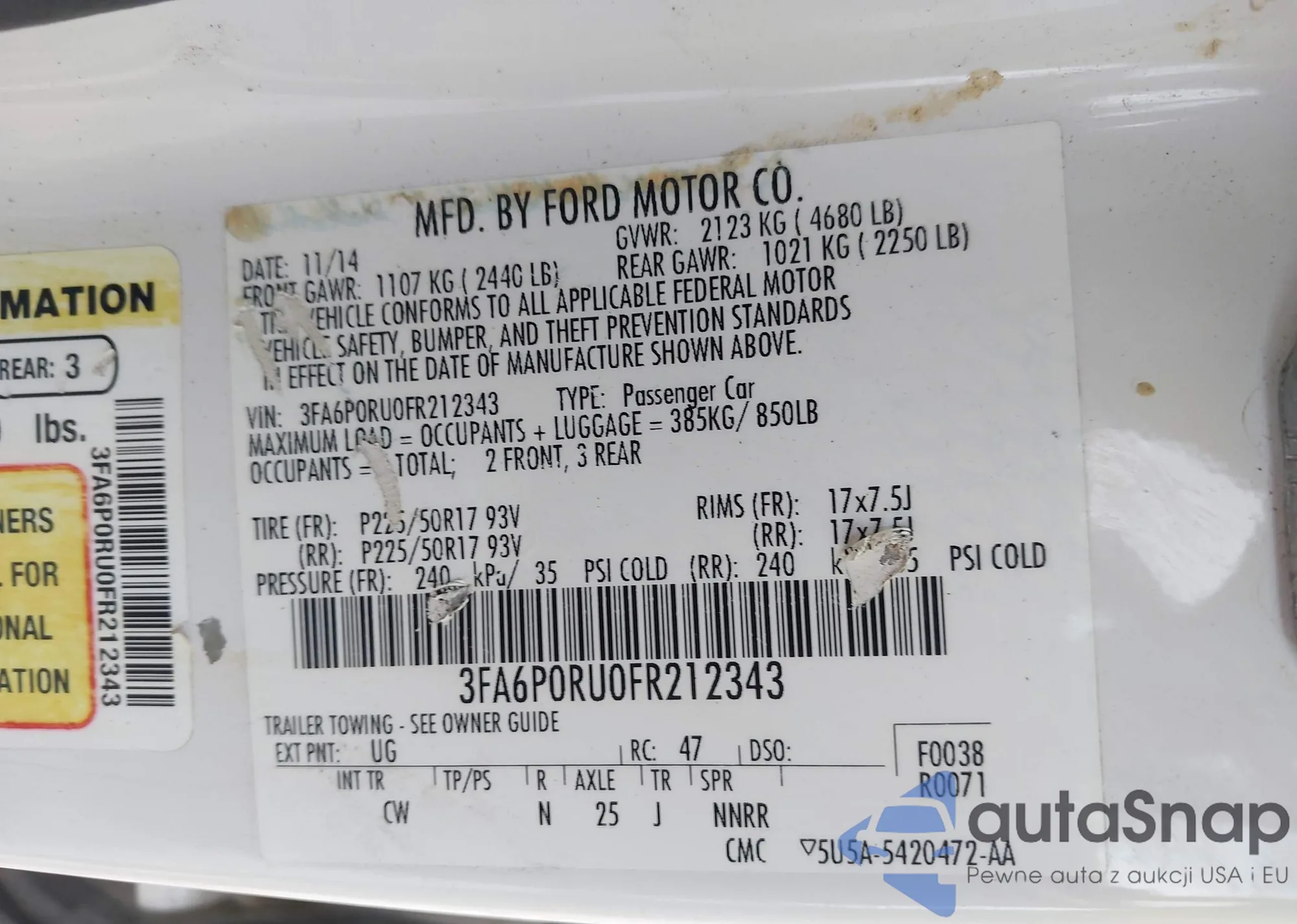 • VIN 3FA6P0RU0FR212343