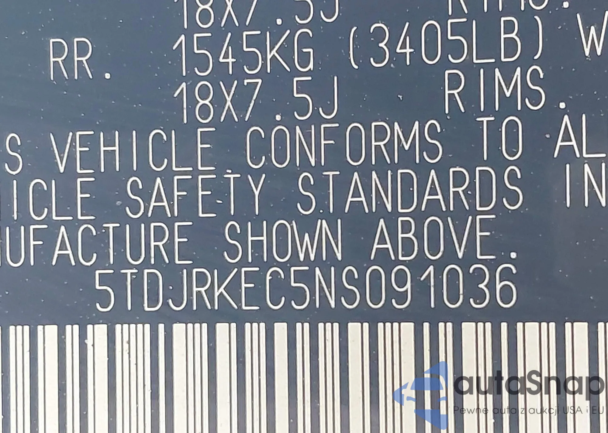 • VIN 5TDJRKEC5NS091036