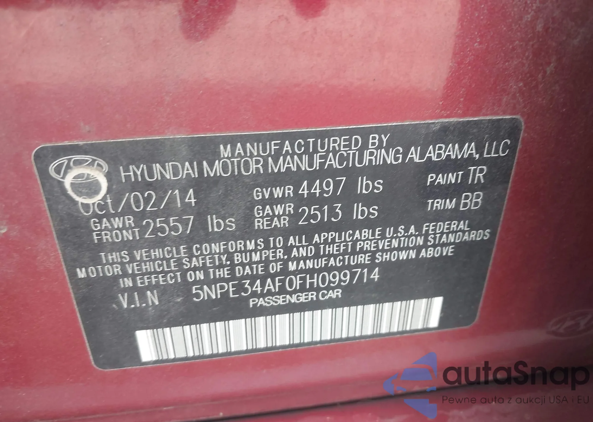 • VIN 5NPE34AF0FH099714