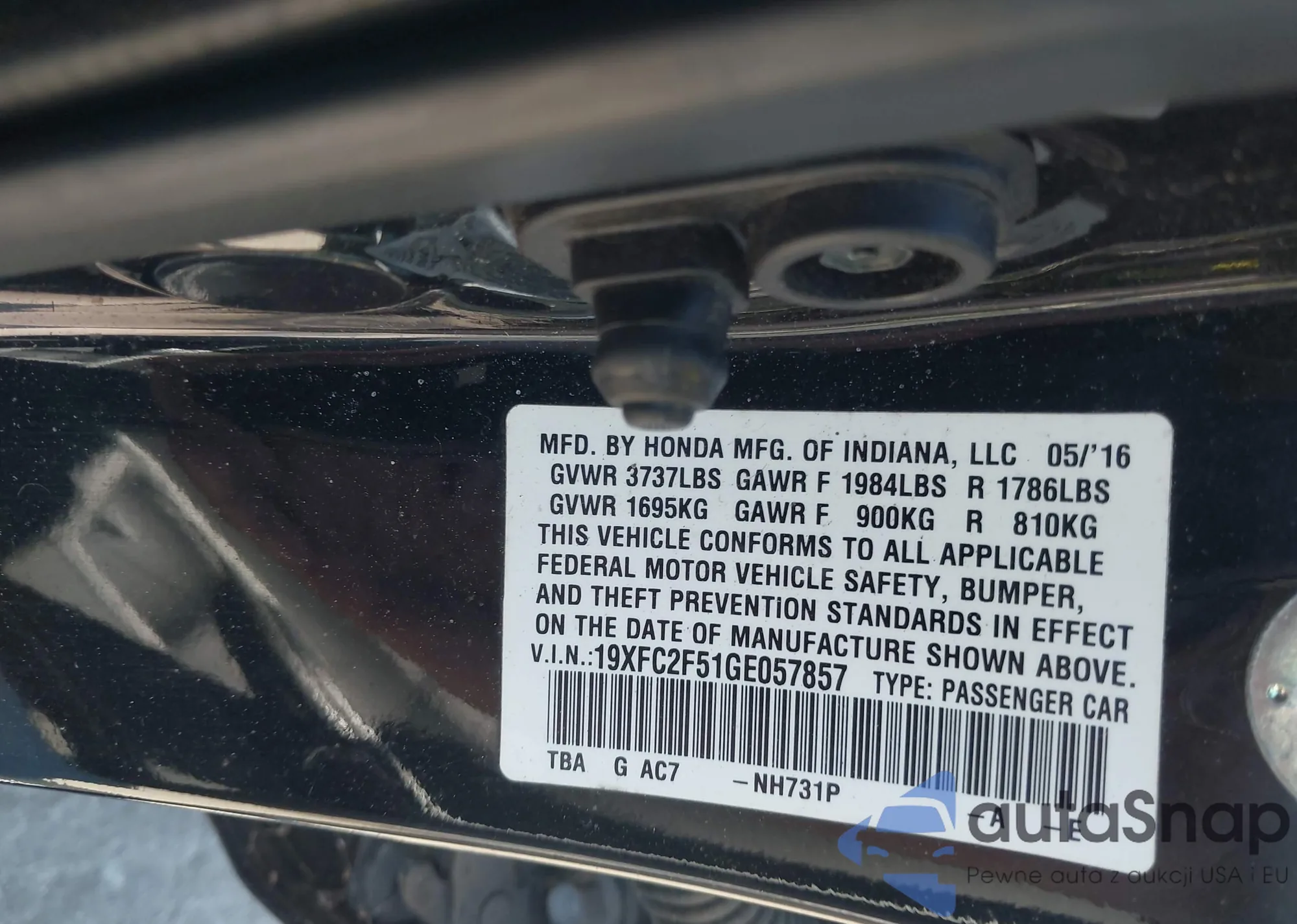 LOT: 43614313 VIN: 19XFC2F51GE057857