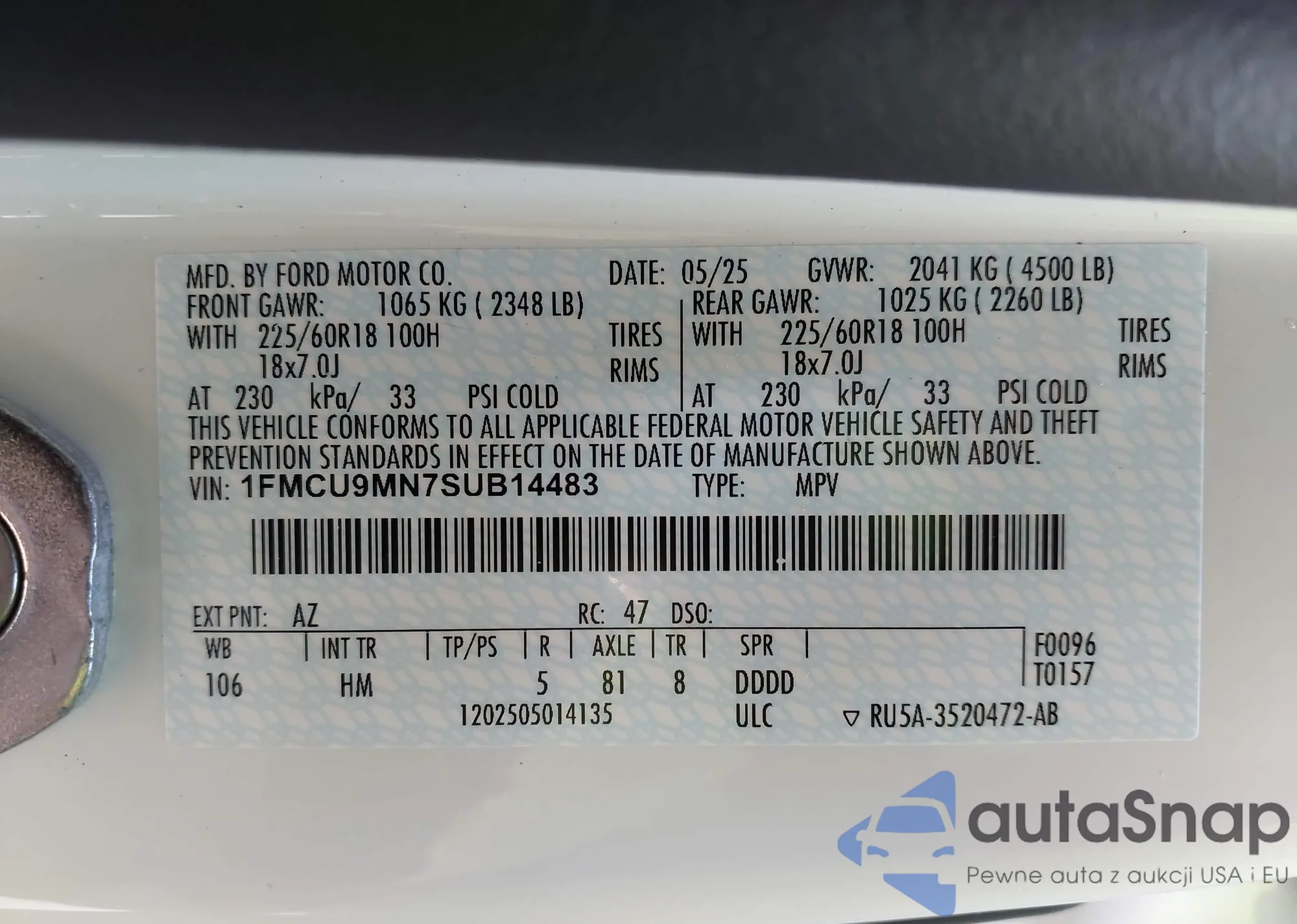 • VIN 1FMCU9MN7SUB14483