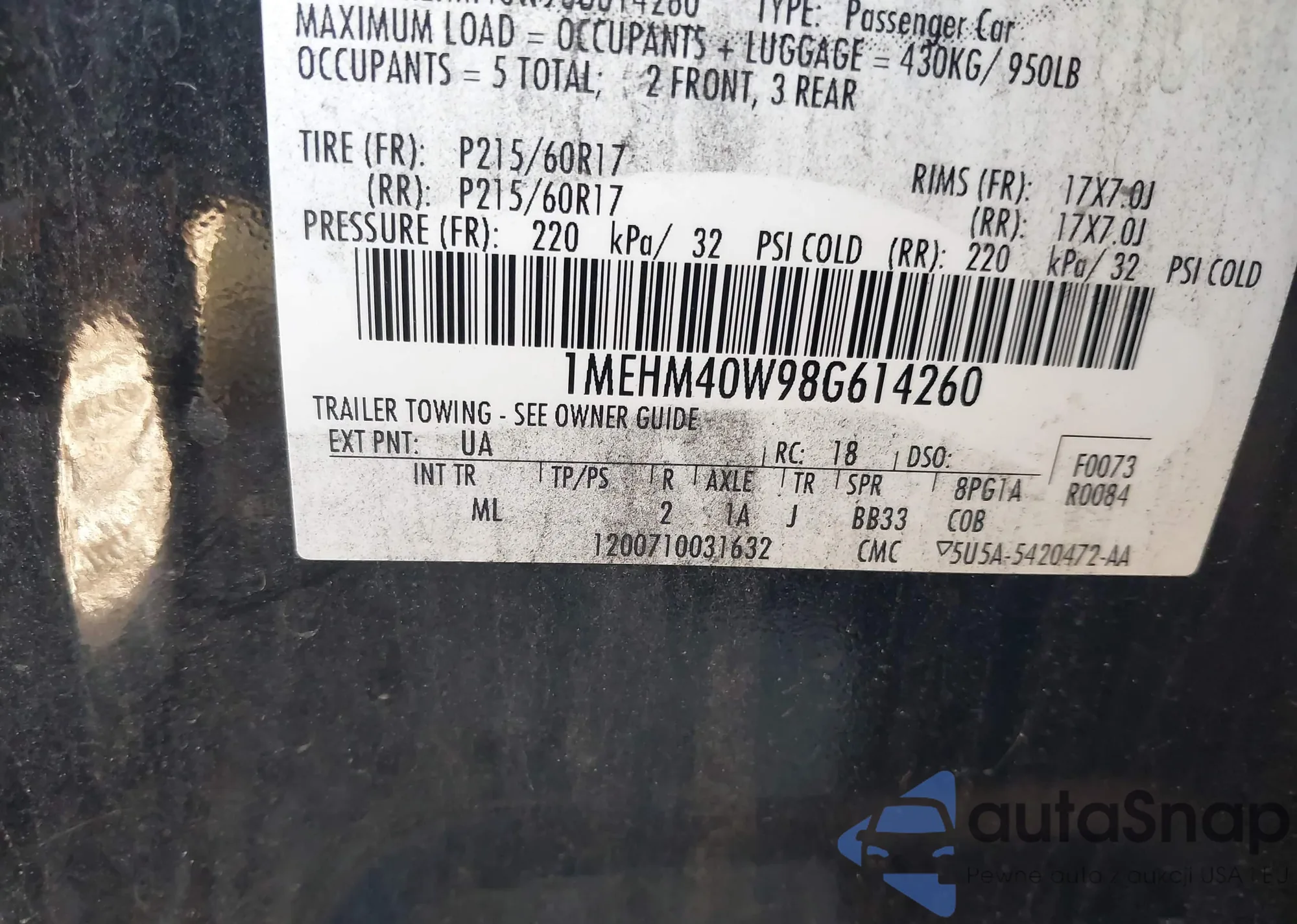 LOT: 43329544 VIN: 1MEHM40W98G614260
