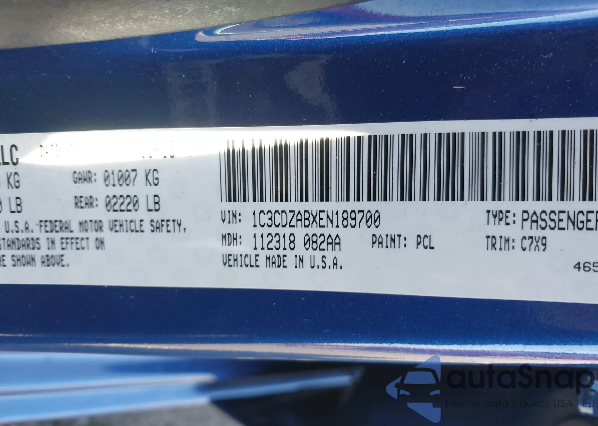 LOT: 43353496 VIN: 1C3CDZABXEN189700