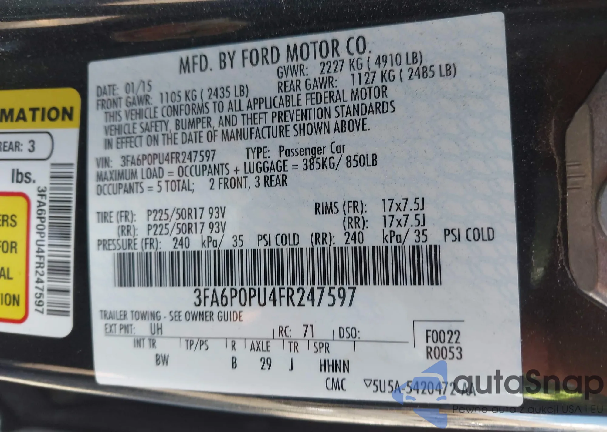 LOT: 43222489 VIN: 3FAHP081X6R168190