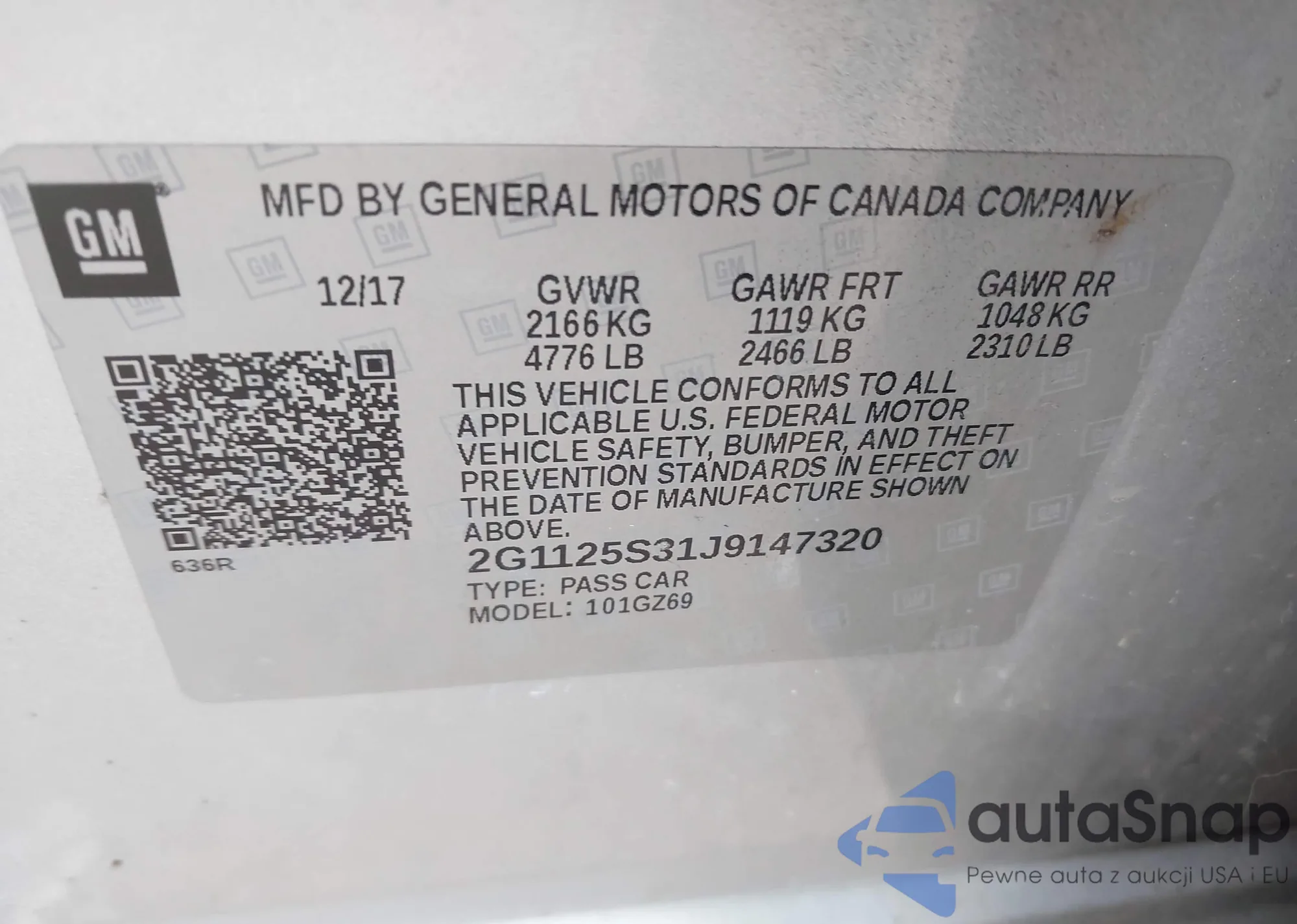 • VIN 2G1125S31J9147320