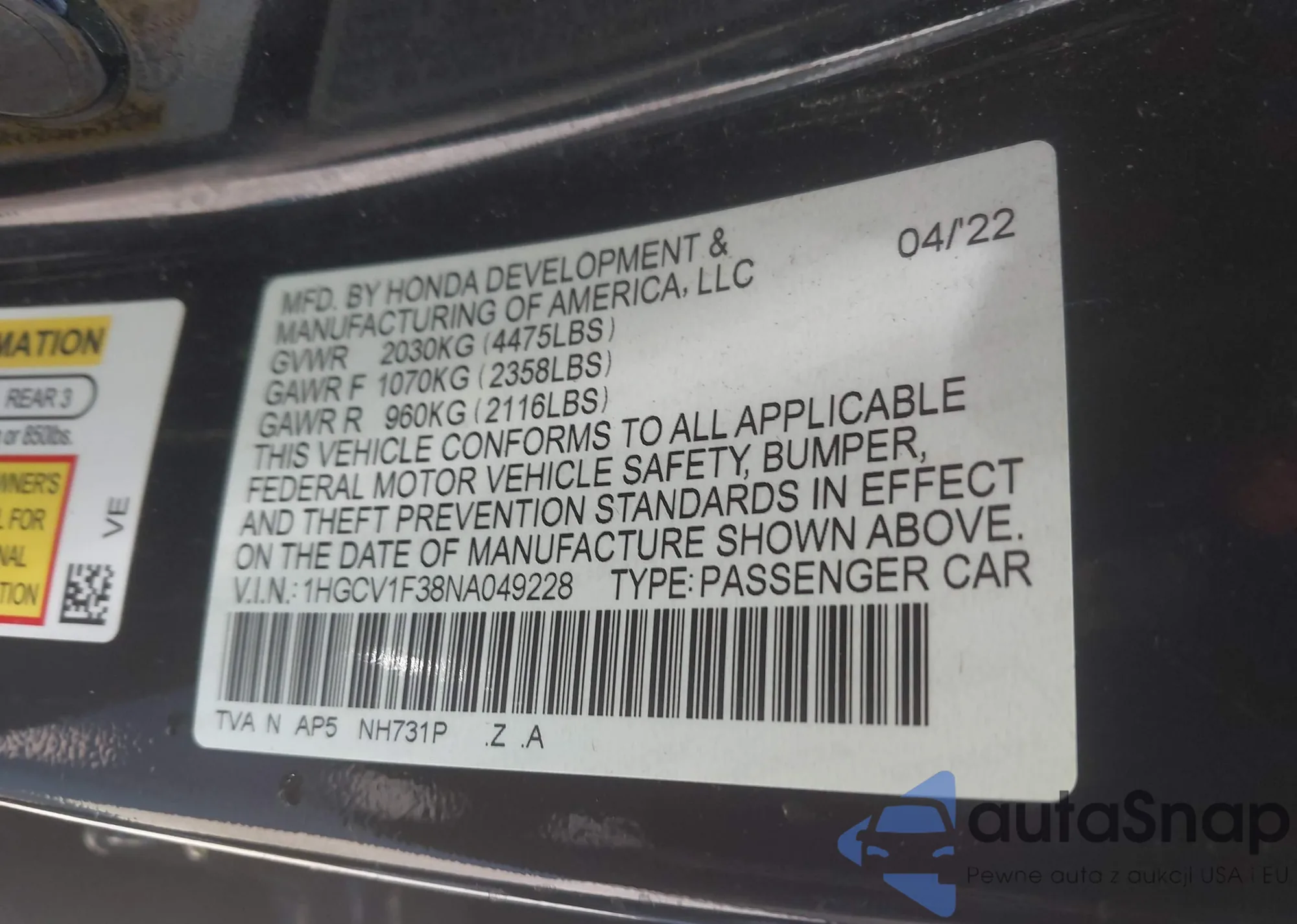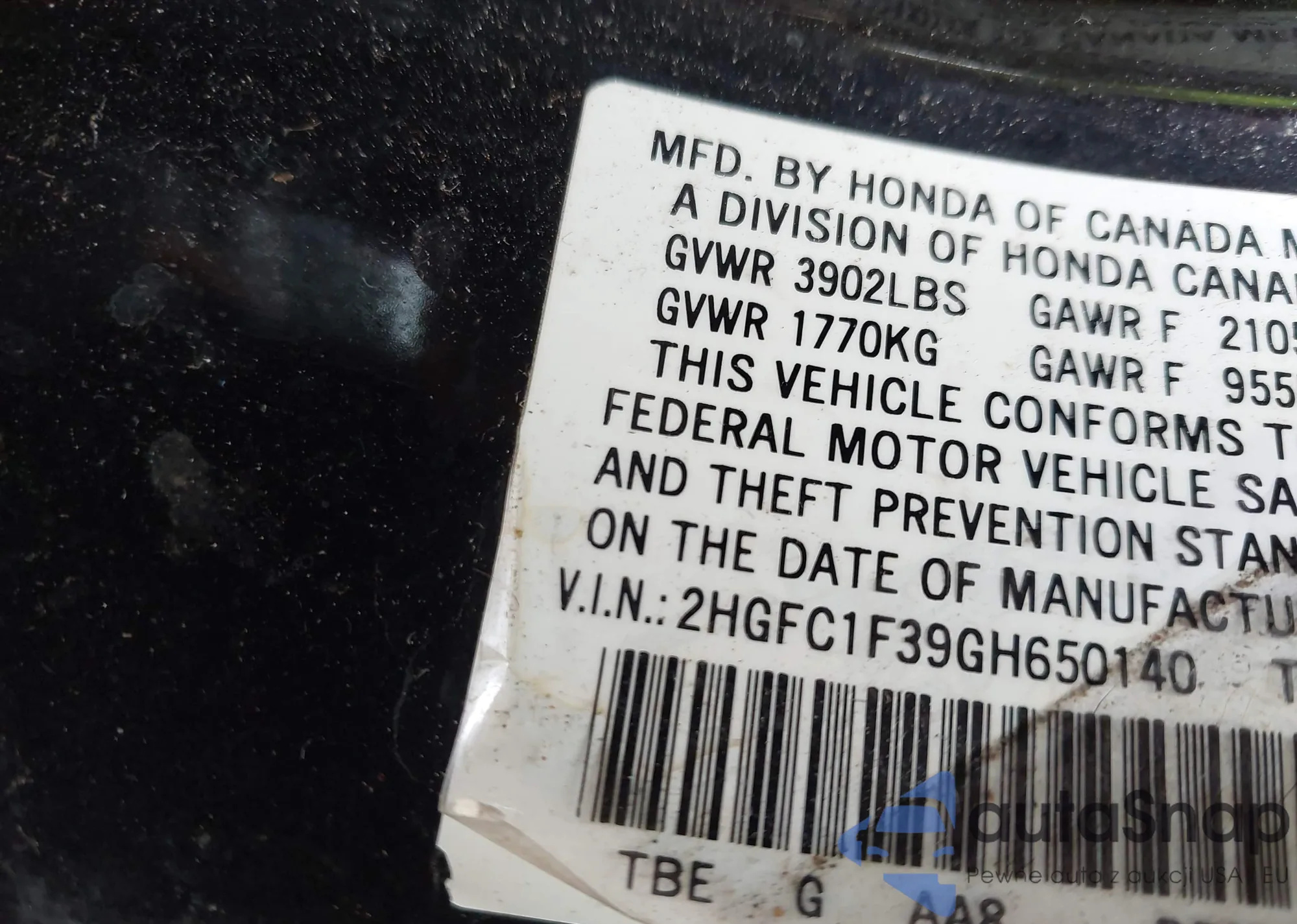 LOT: 43287145 VIN: 1HGCM56846A182916