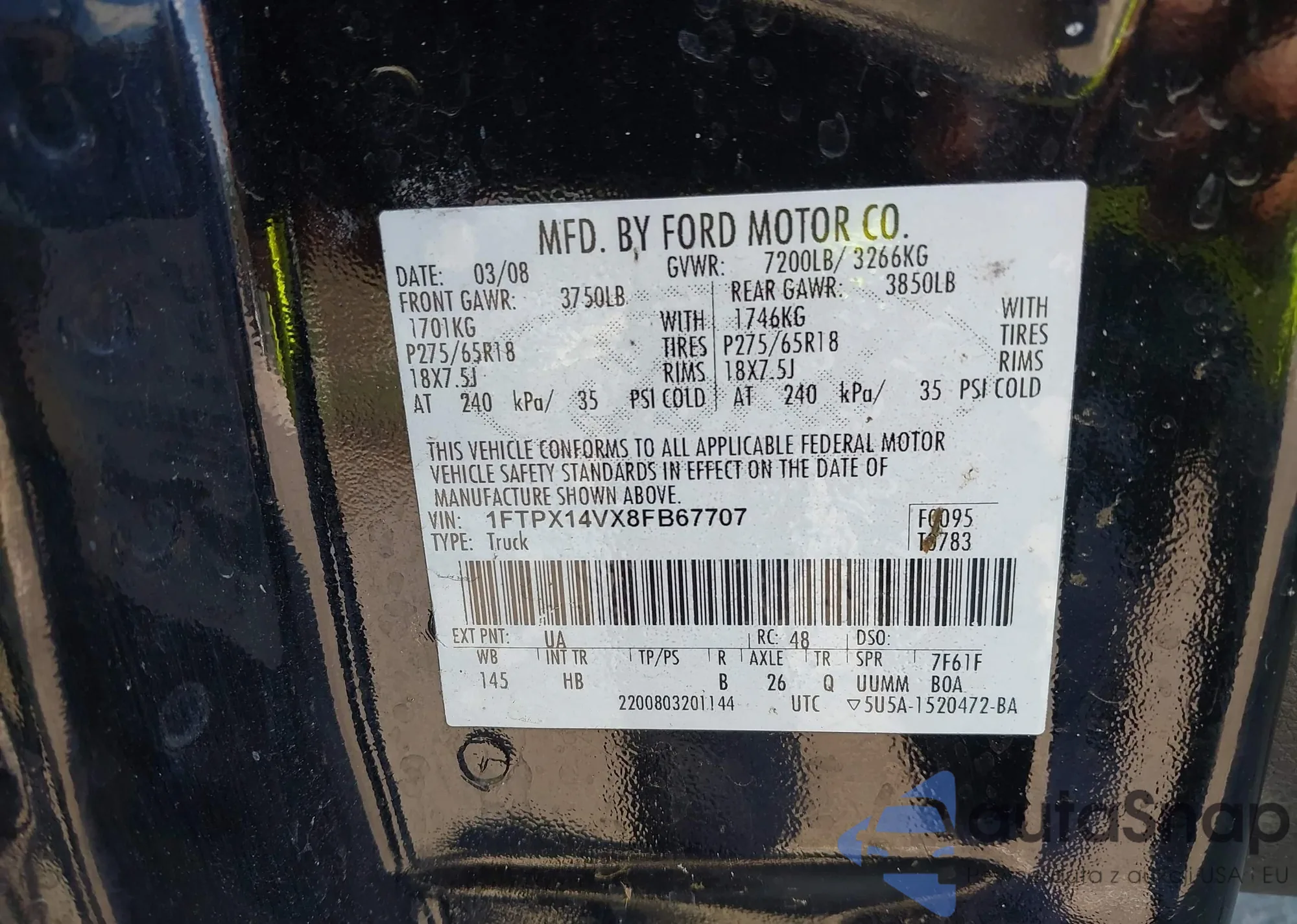 • VIN 1FTPX14VX8FB67707
