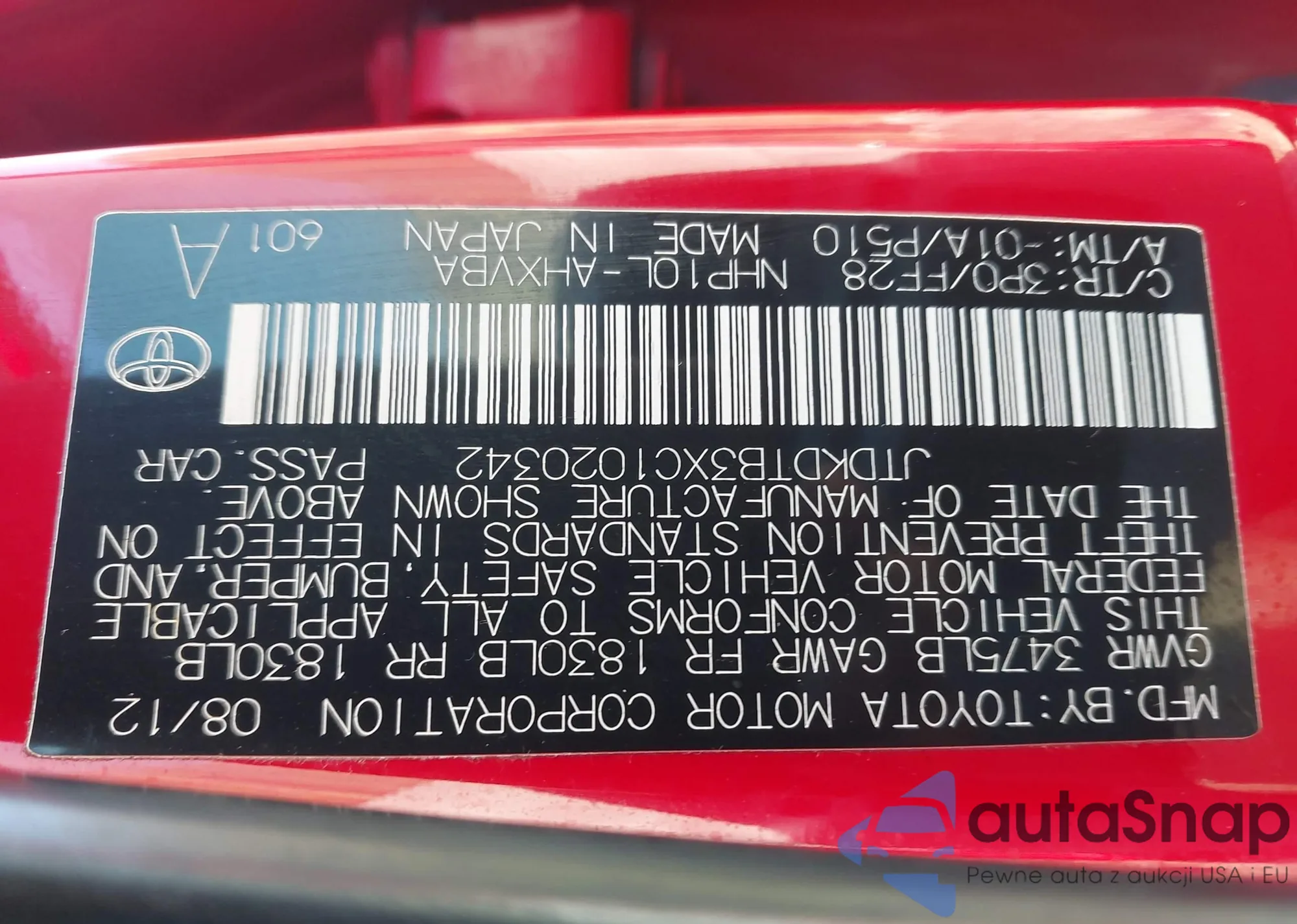 • VIN JTDKDTB3XC1020342