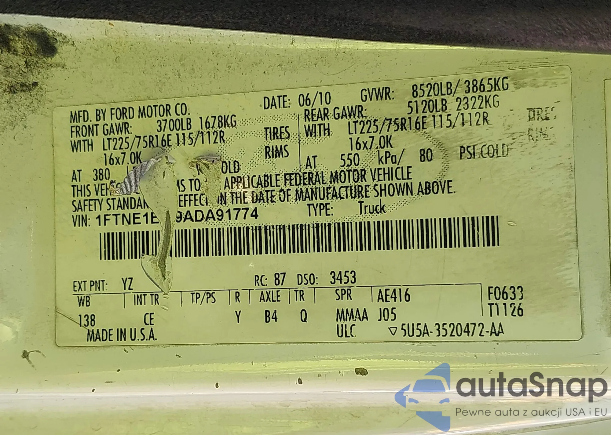 • VIN 1FTNE1EW9ADA91774