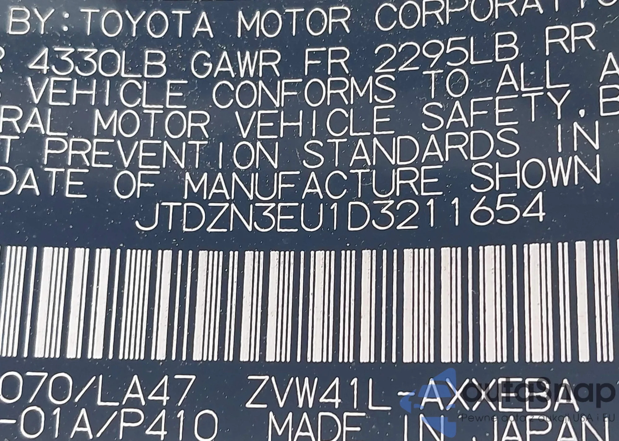 • VIN JTDZN3EU1D3211654