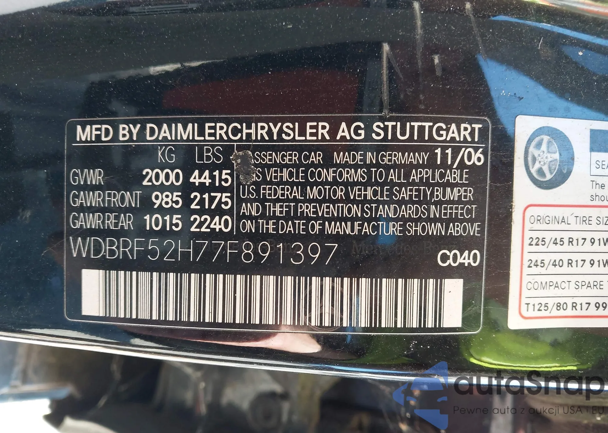 • VIN WDBRF52H77F891397