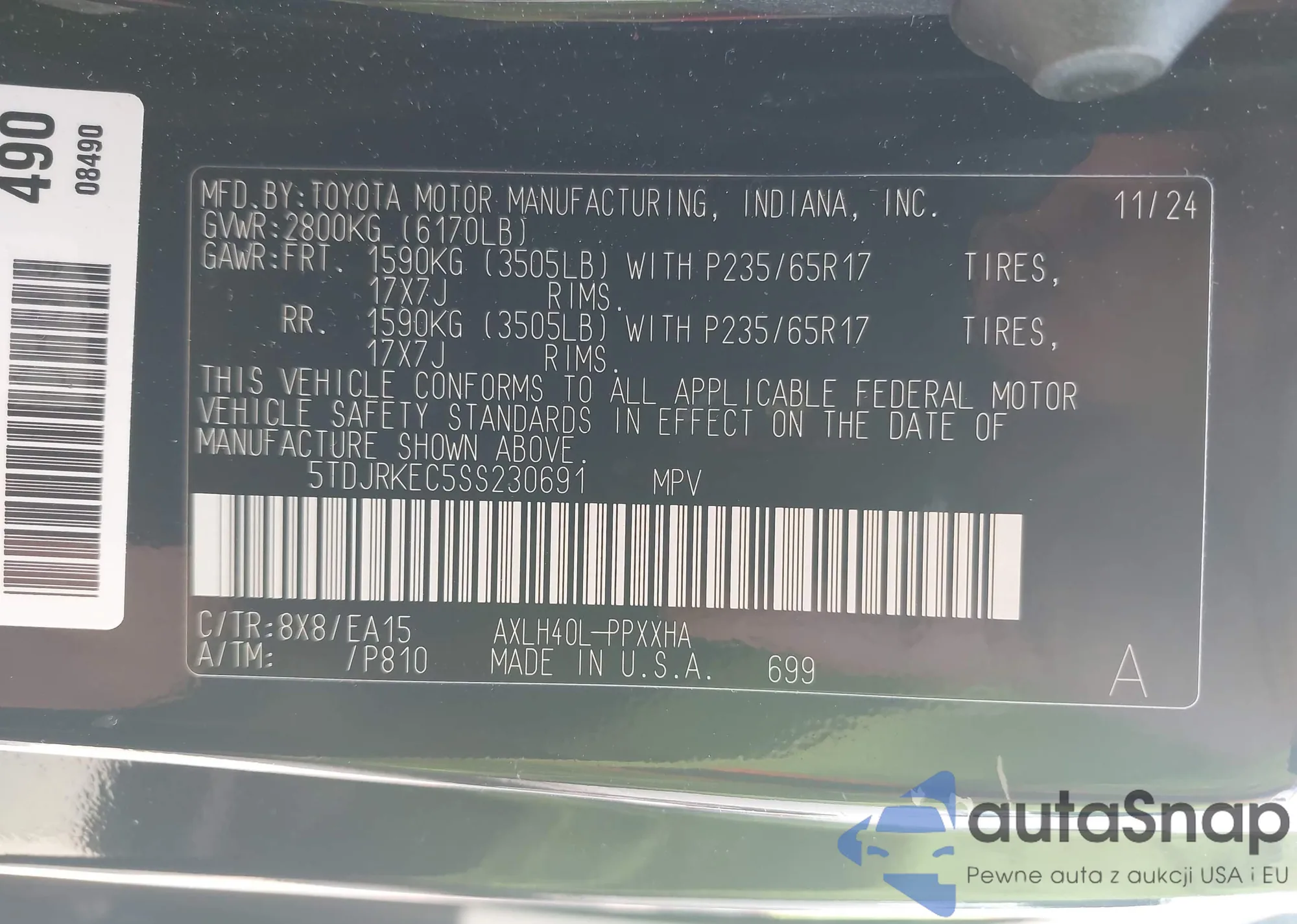 • VIN 5TDJRKEC5SS230691
