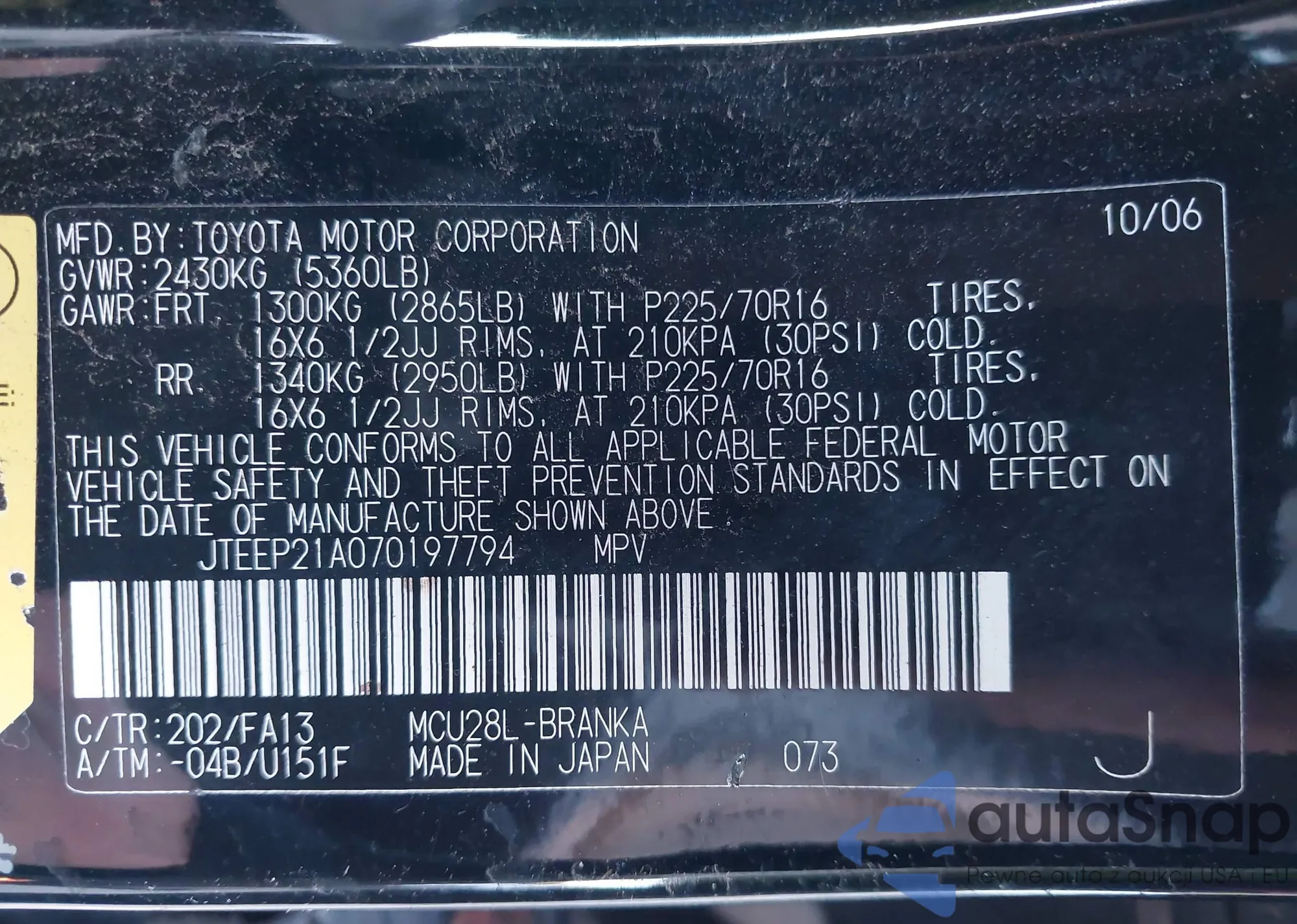 LOT: 43350824 VIN: JTEEP21A070197794
