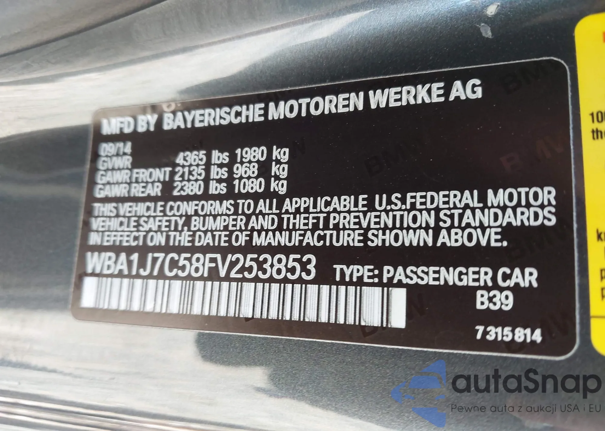 • VIN WBA1J7C58FV253853
