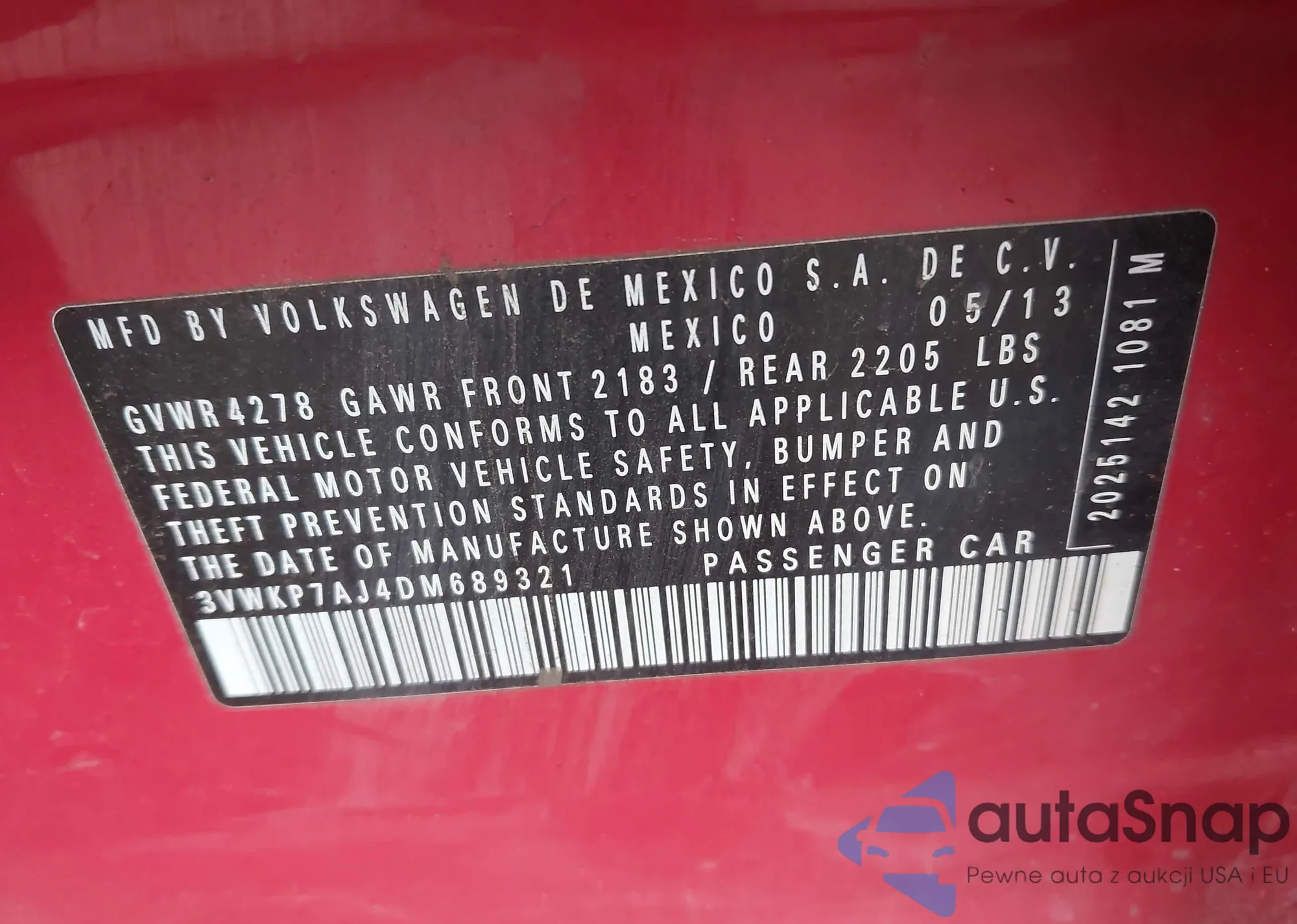 • VIN 3VWKP7AJ4DM689321