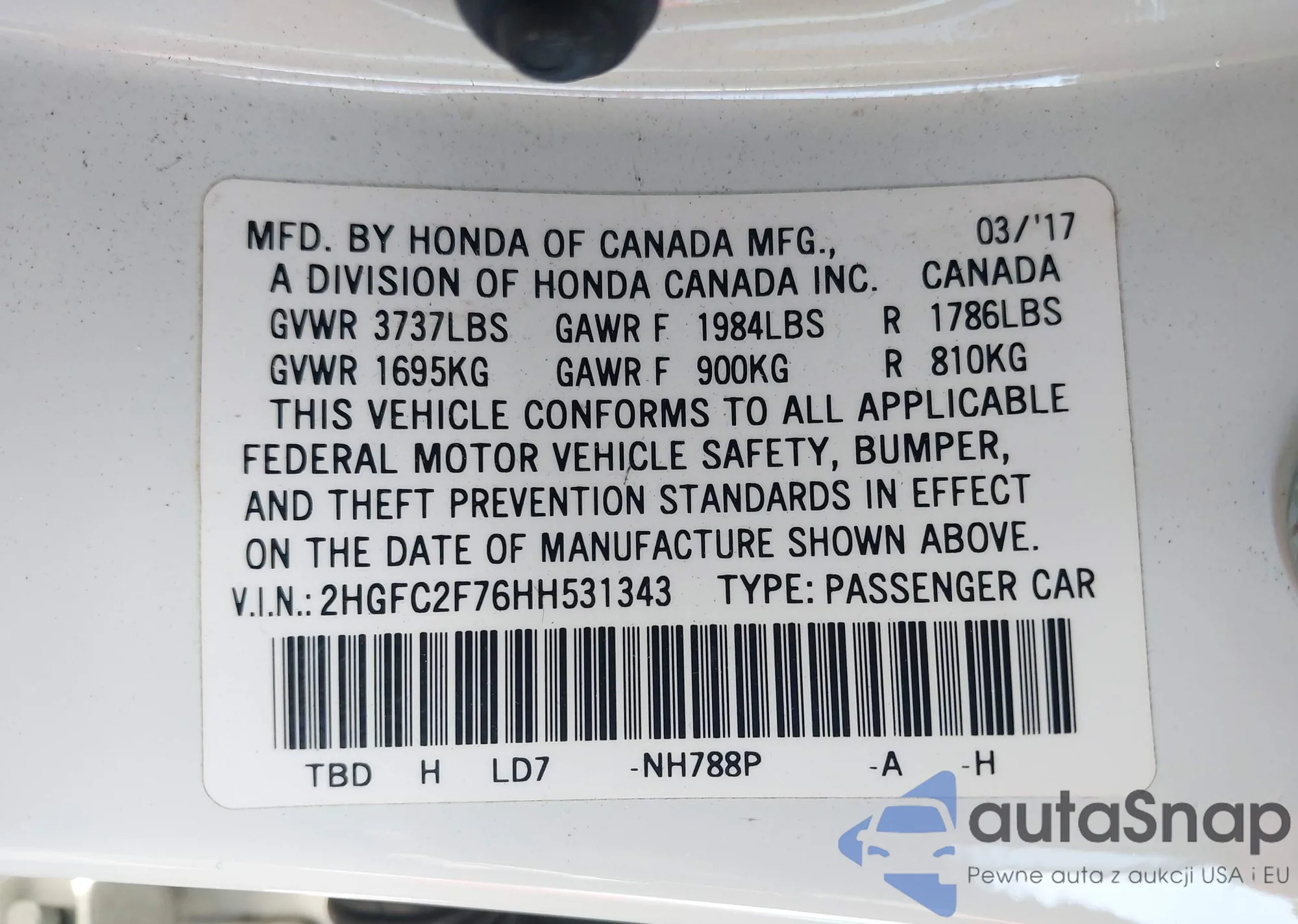 • VIN 2HGFC1E57JH705212