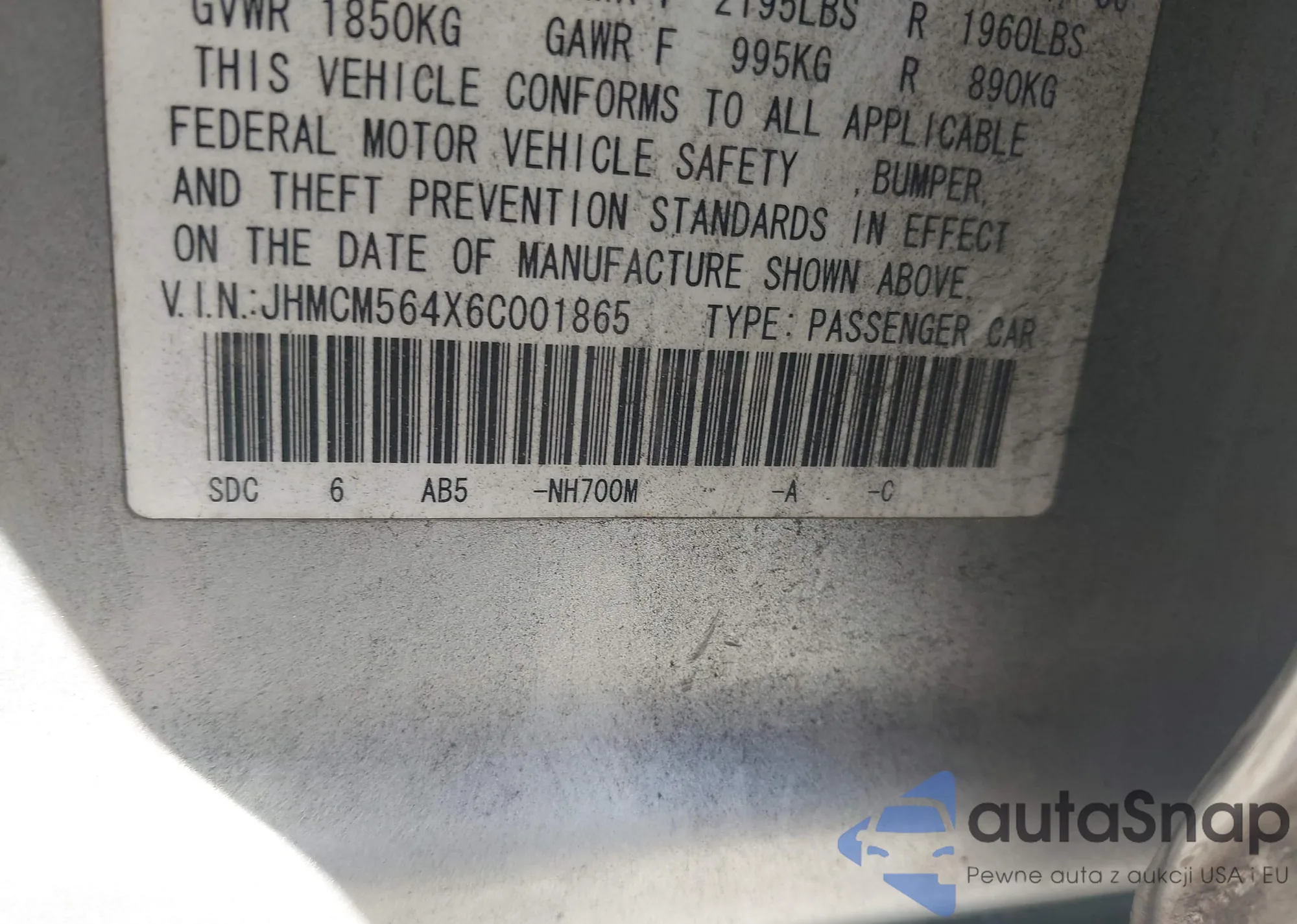 • VIN JHMCM564X6C001865
