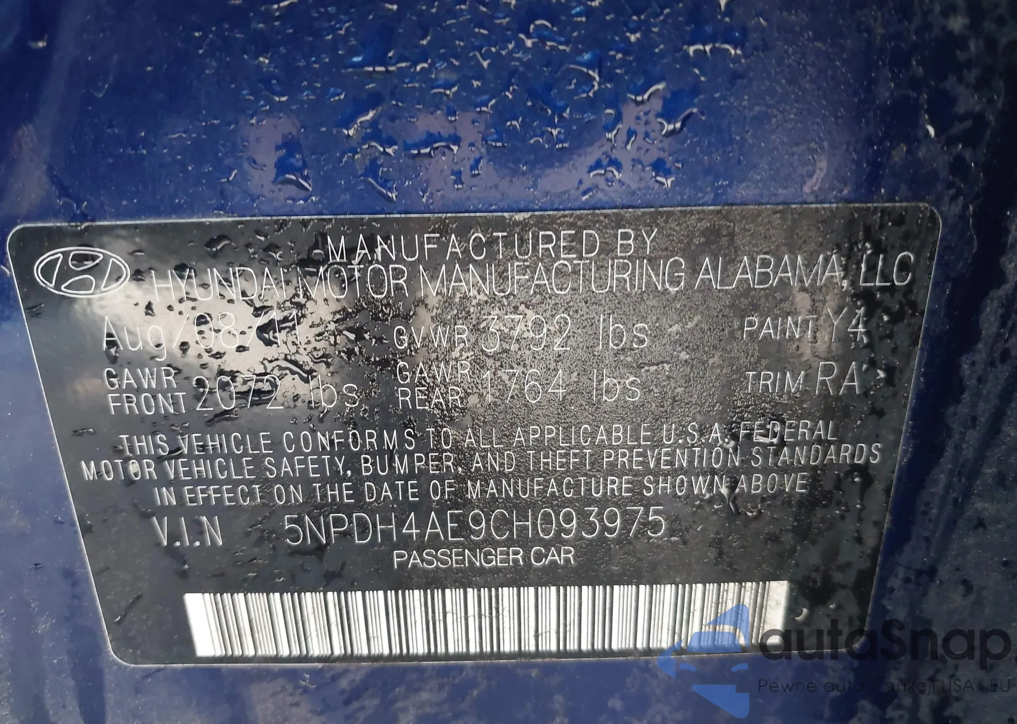 • VIN 5NPDH4AE9CH093975