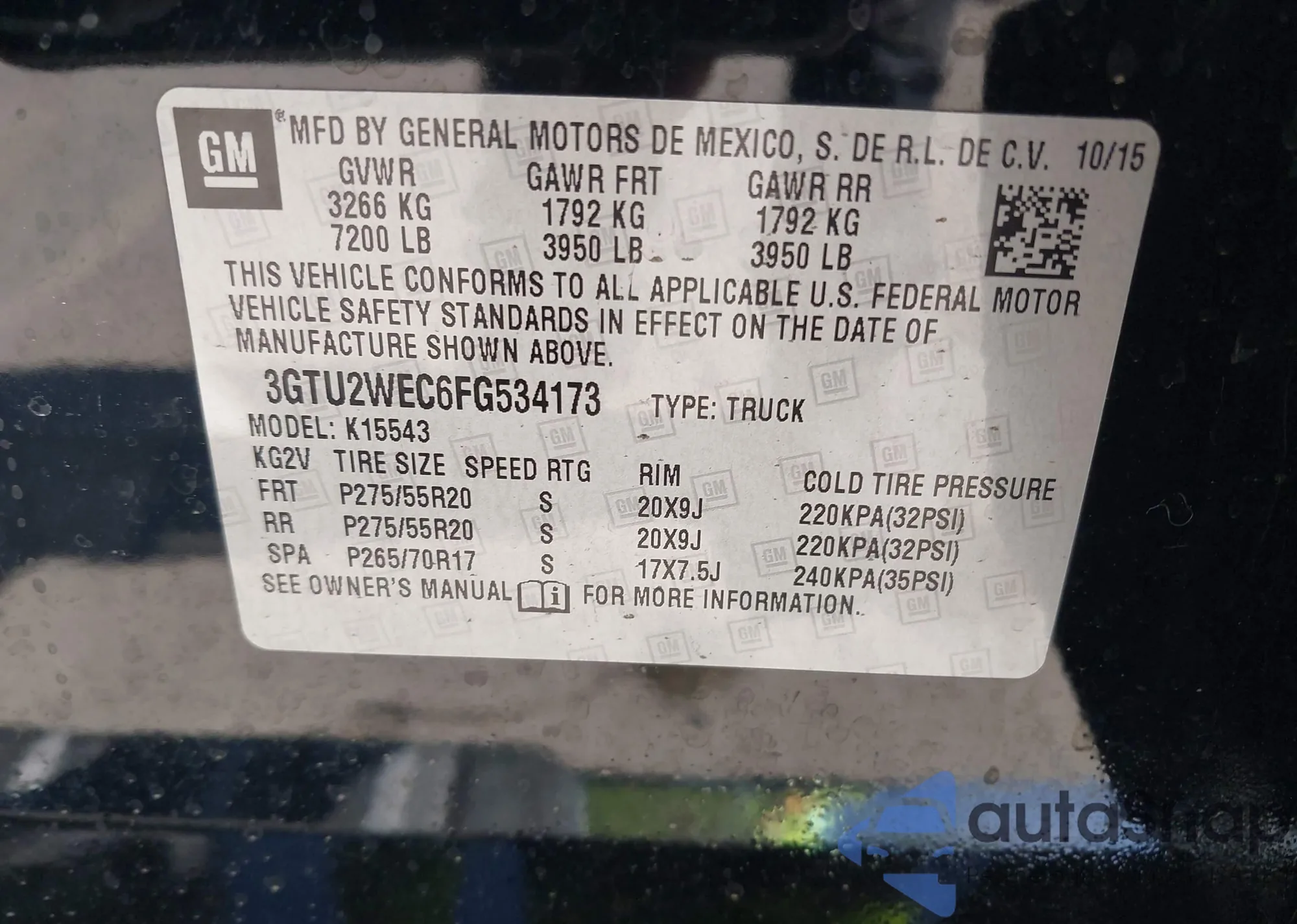 • VIN 3GTU2WEC6FG534173