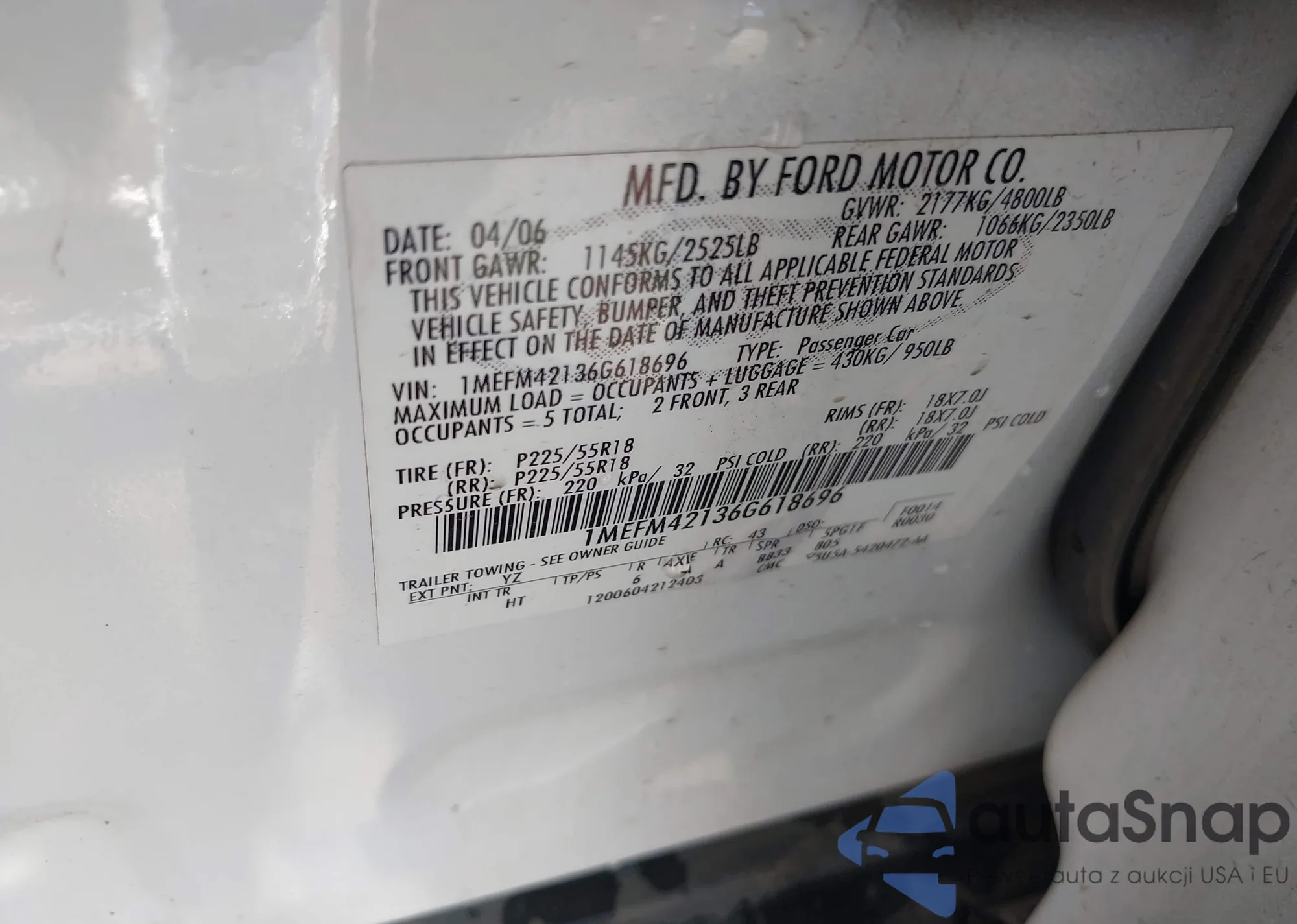 LOT: 43294237 VIN: 1MEFM42136G618696