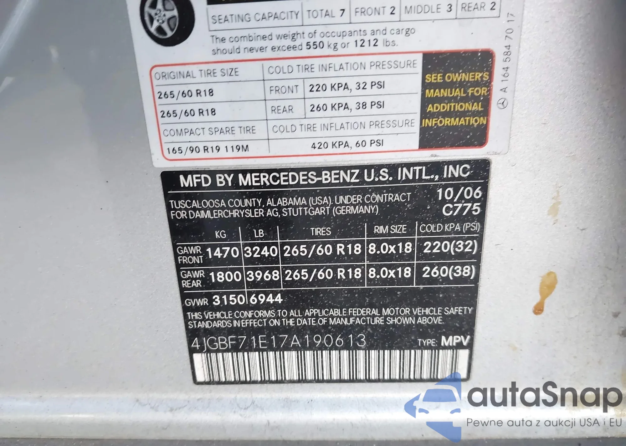 LOT: 43483973 VIN: 4JGBF71E17A190613