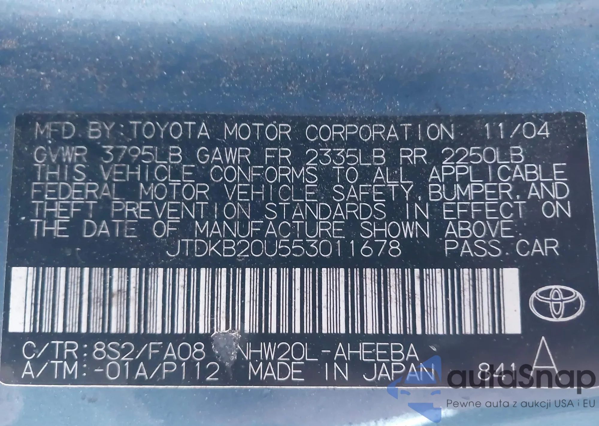 LOT: 43496236 VIN: JTDKB20U553011678
