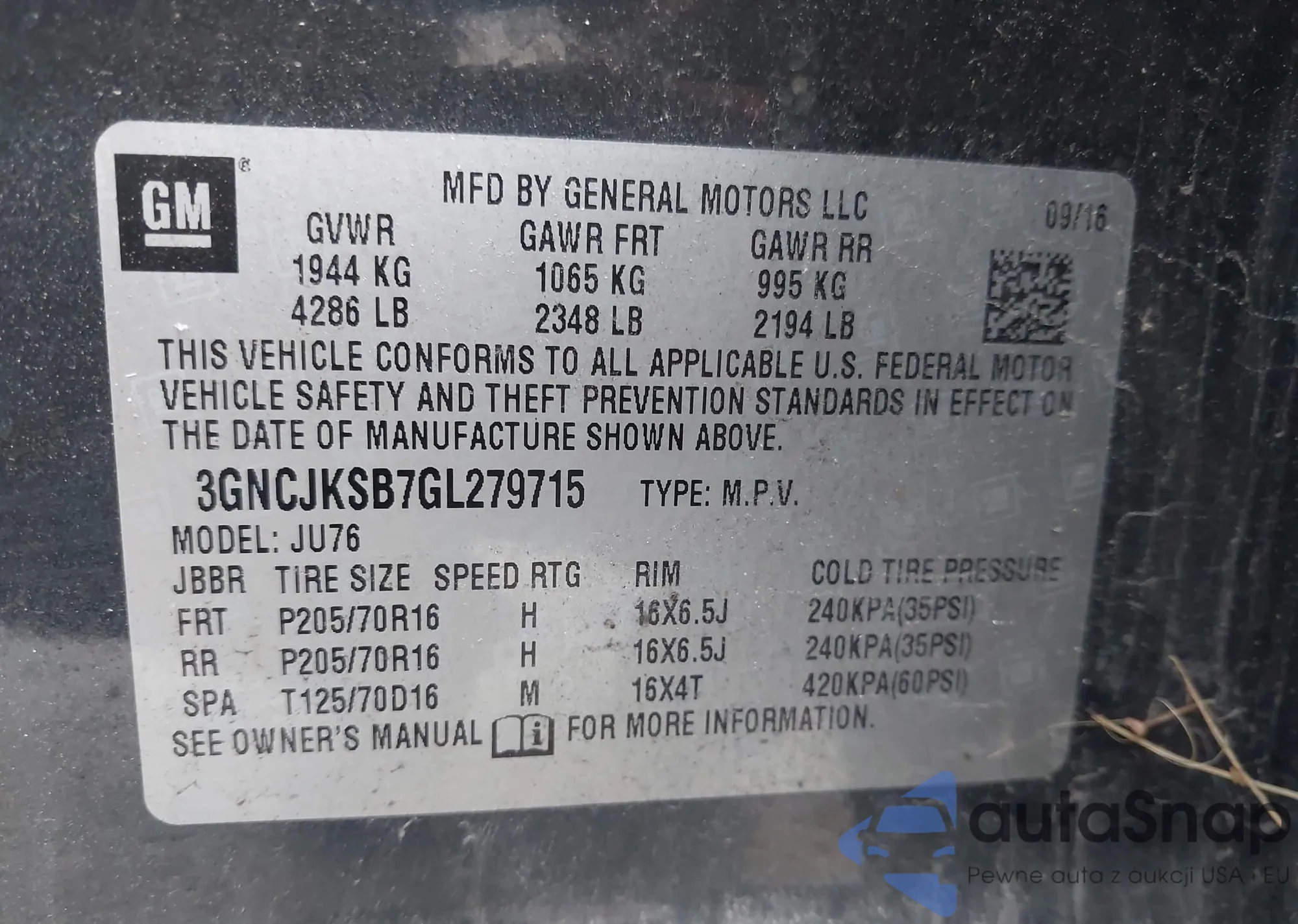 • VIN 3GNCJKSB7GL279715
