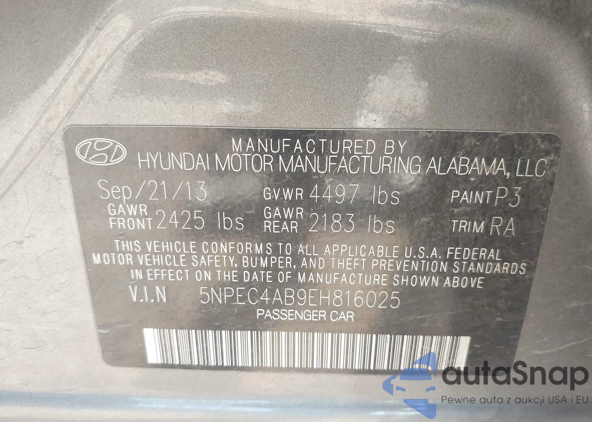 • VIN 5NPEC4AB9EH816025