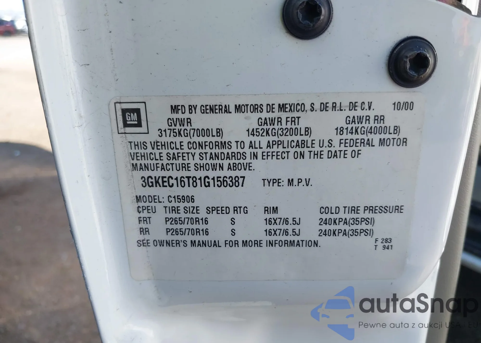 LOT: 43378101 VIN: 2CTFLDEY5A6384457