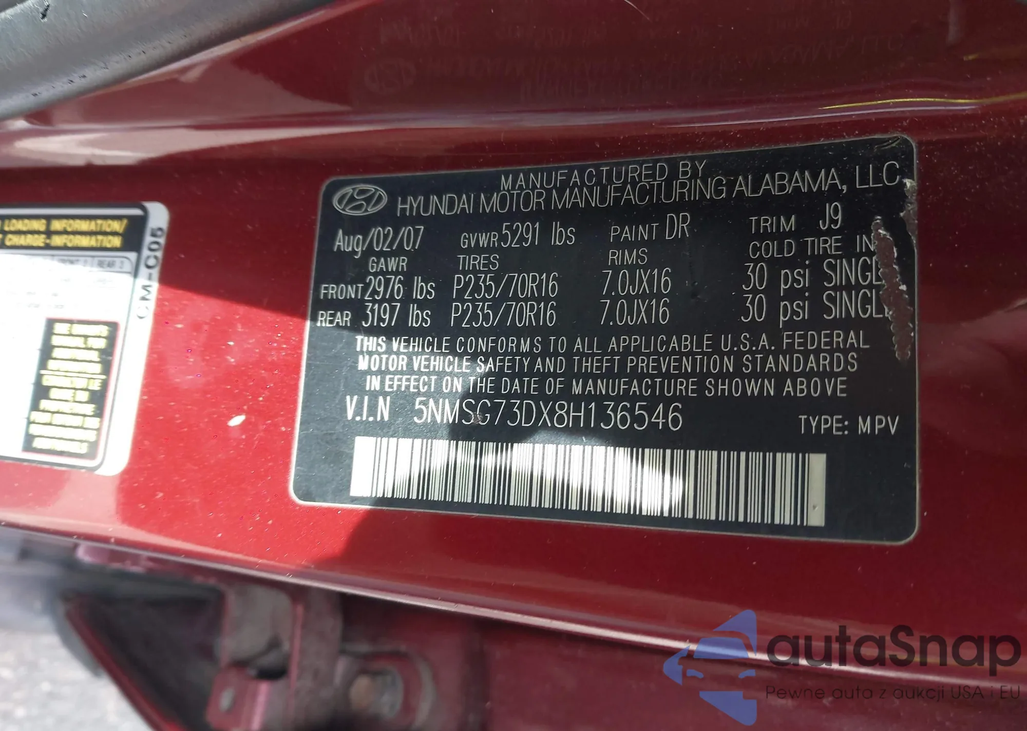 • VIN KM8JBCAEXNU170081