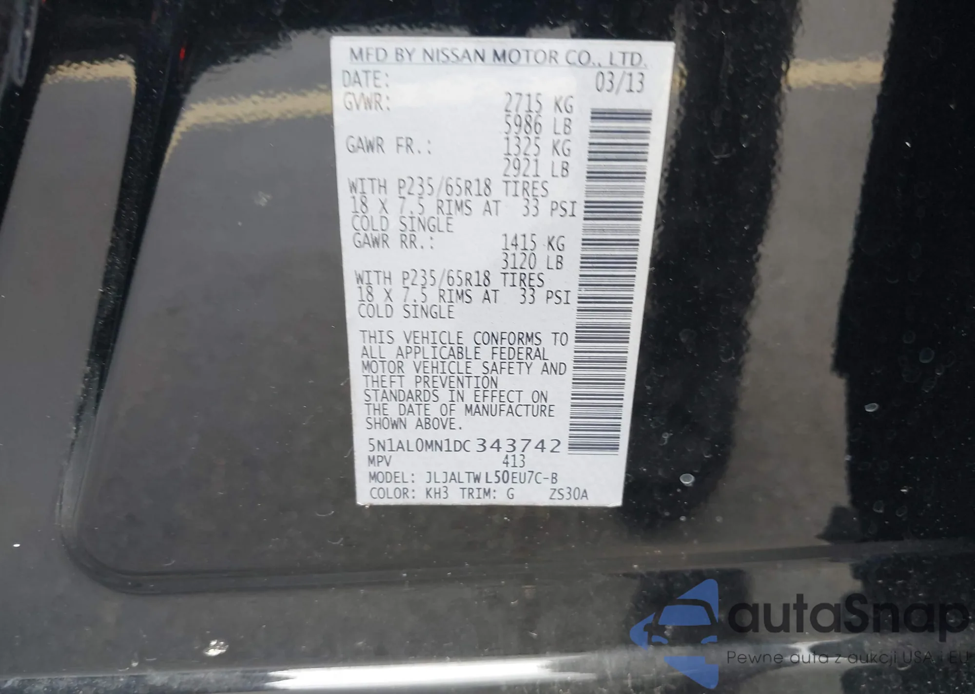 LOT: 43235073 VIN: 1HGCV3F9XMA013300