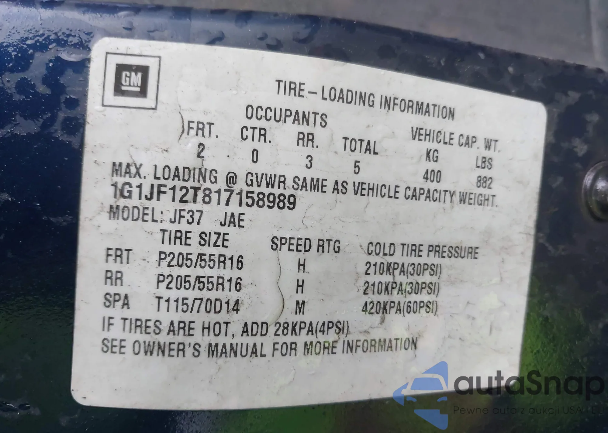 • VIN 1G1JF12T817158989