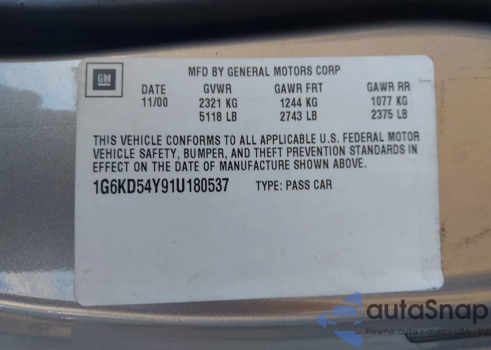 LOT: 43502756 VIN: 2G1WF52E459213425
