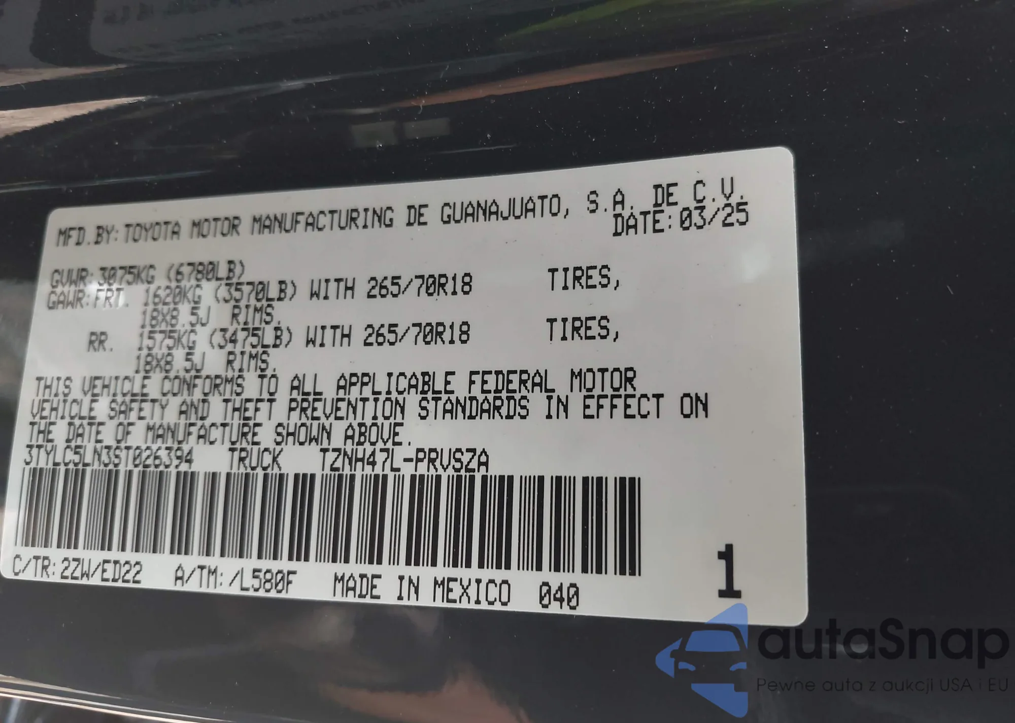 • VIN 3TYLC5LN3ST026394